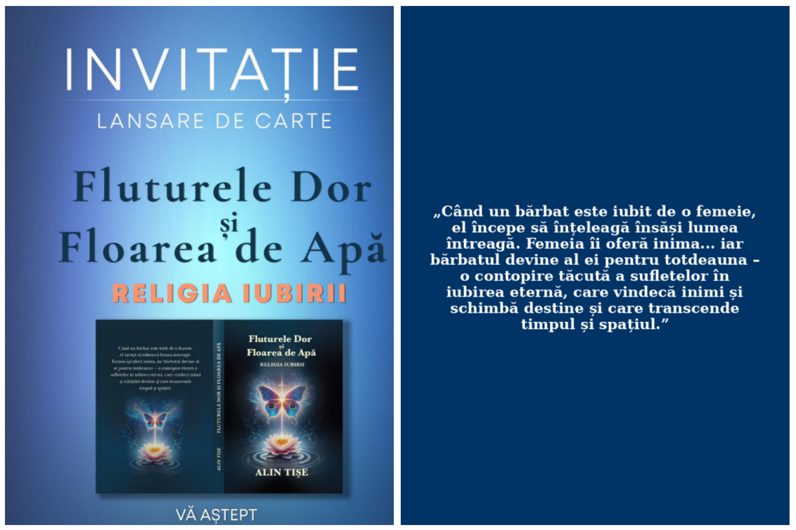 „Când un bărbat este iubit de o femeie, începe să înțeleagă lumea întreagă” –Alin Tișe lansează o carte despre iubirea care schimbă destine: „Fluturele Dor și Floarea de Apă – Religia Iubirii”