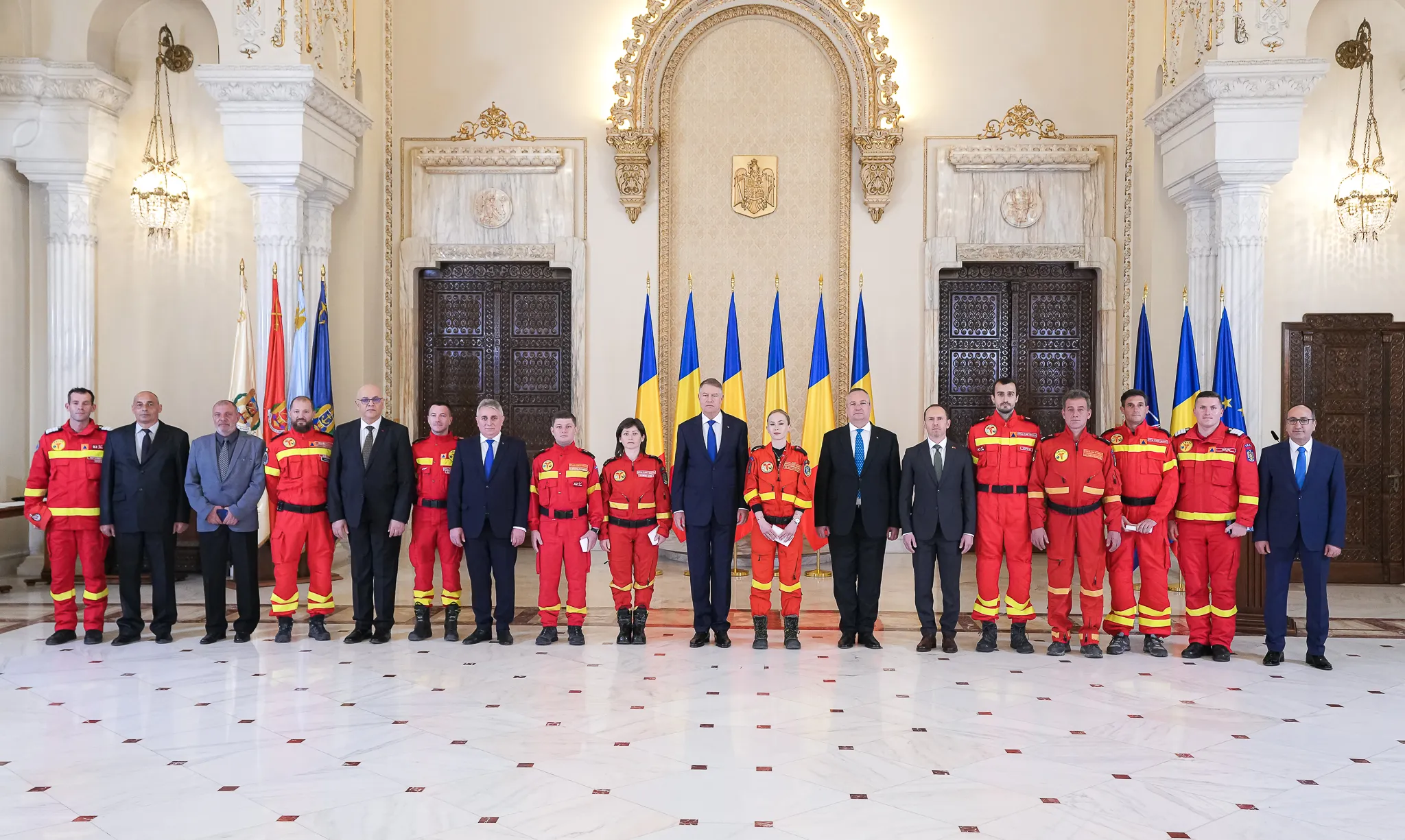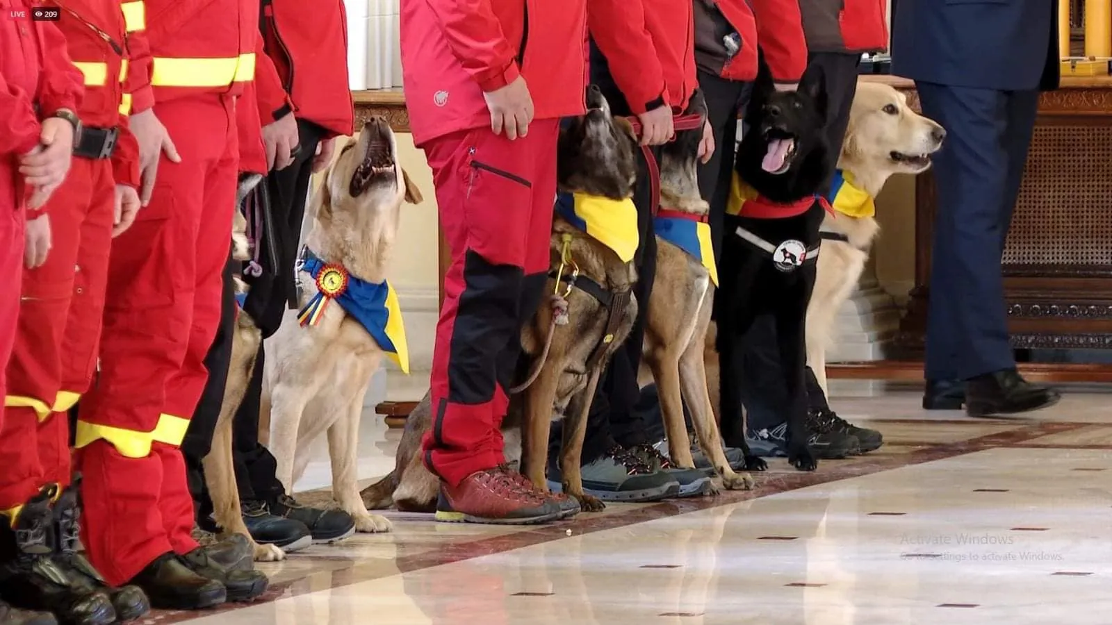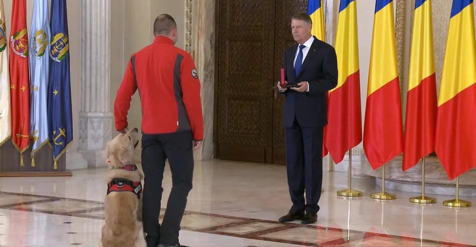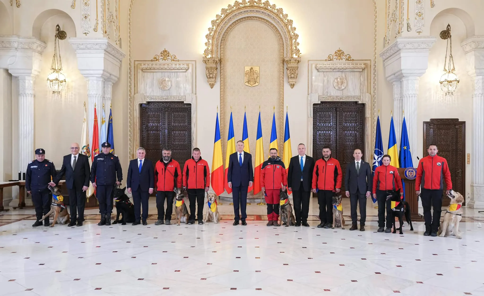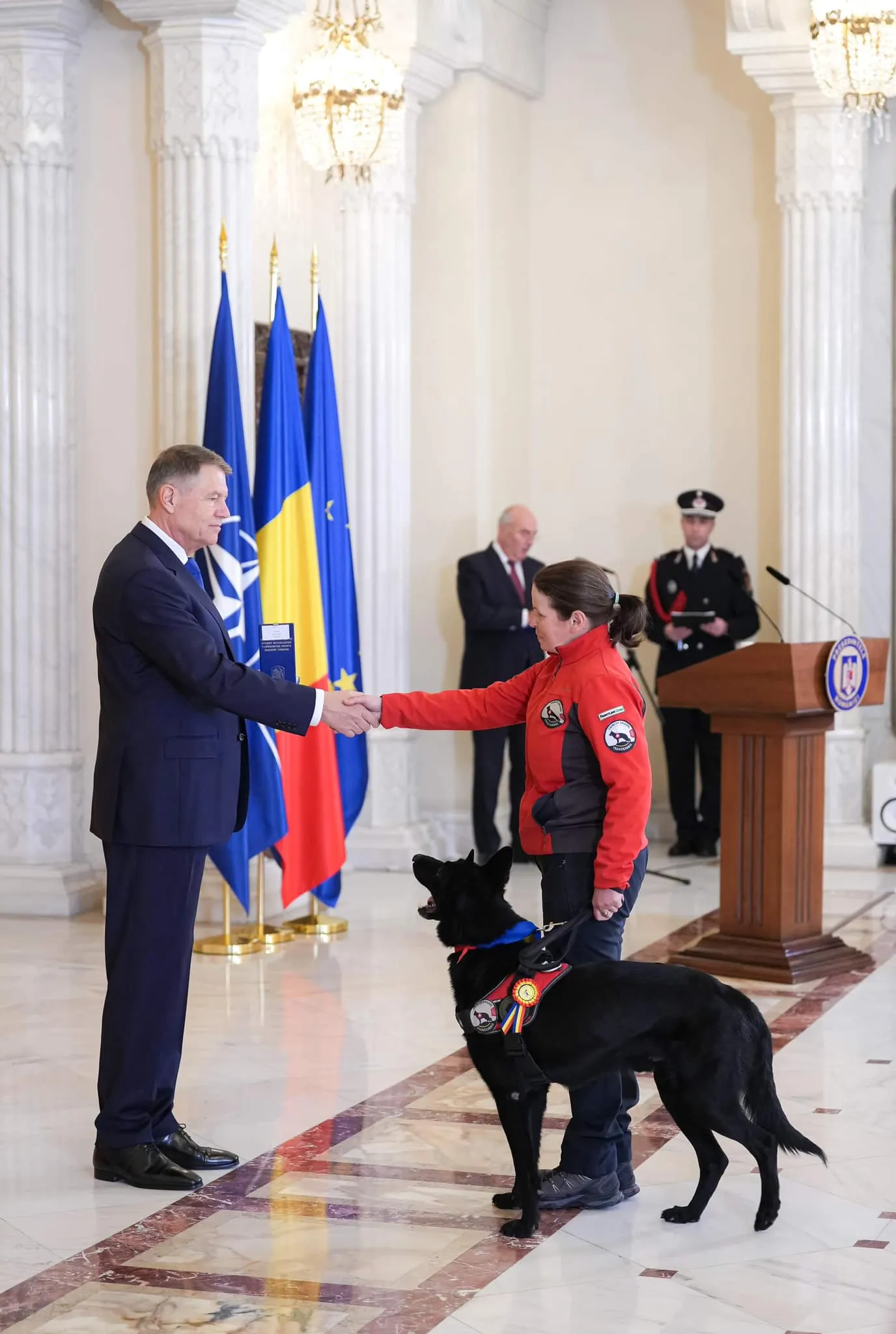 Curajoșii câini de salvare din Cluj și partenerii lor, decorați de Klaus Iohannis pentru misiunea din Turcia