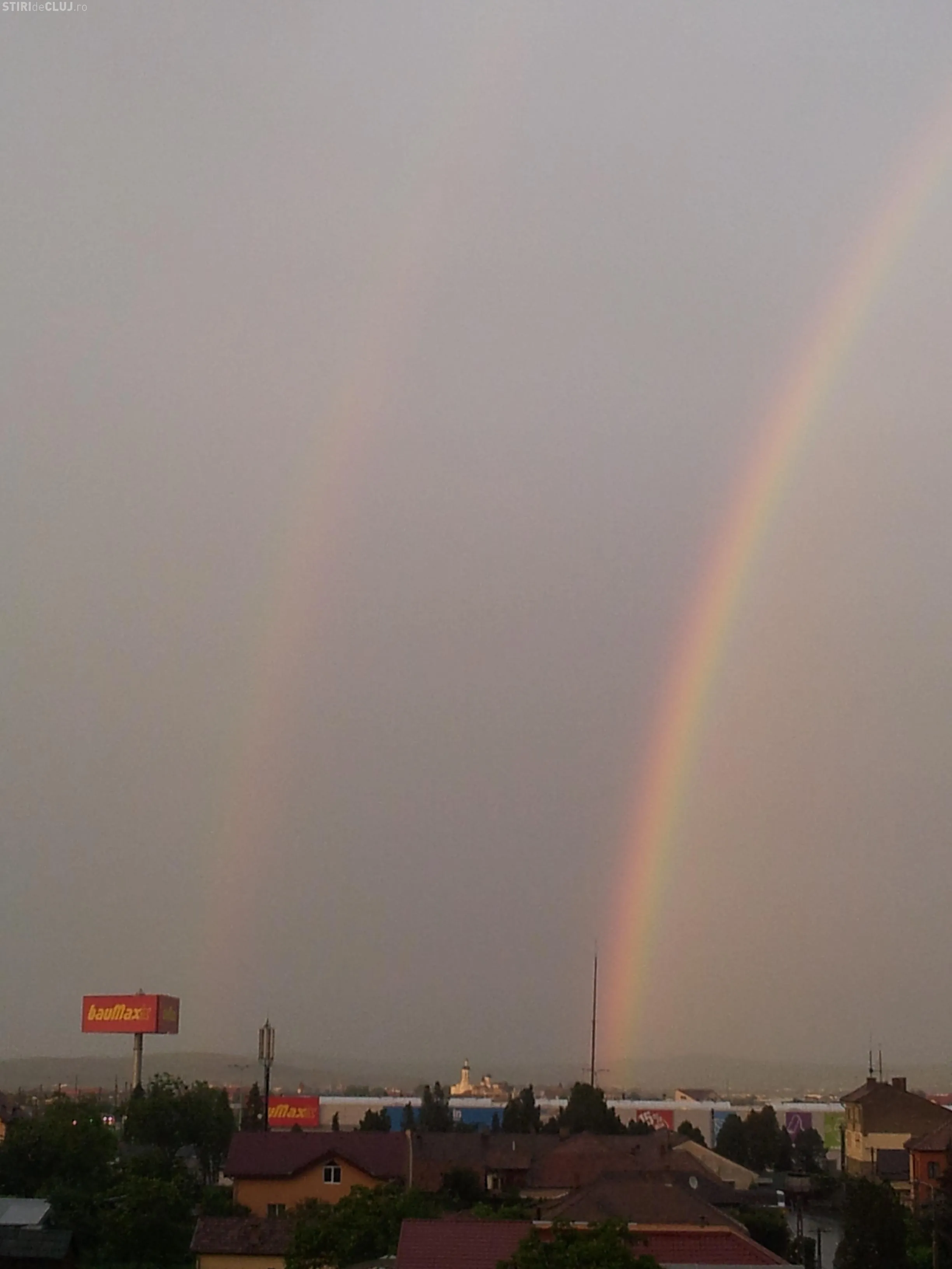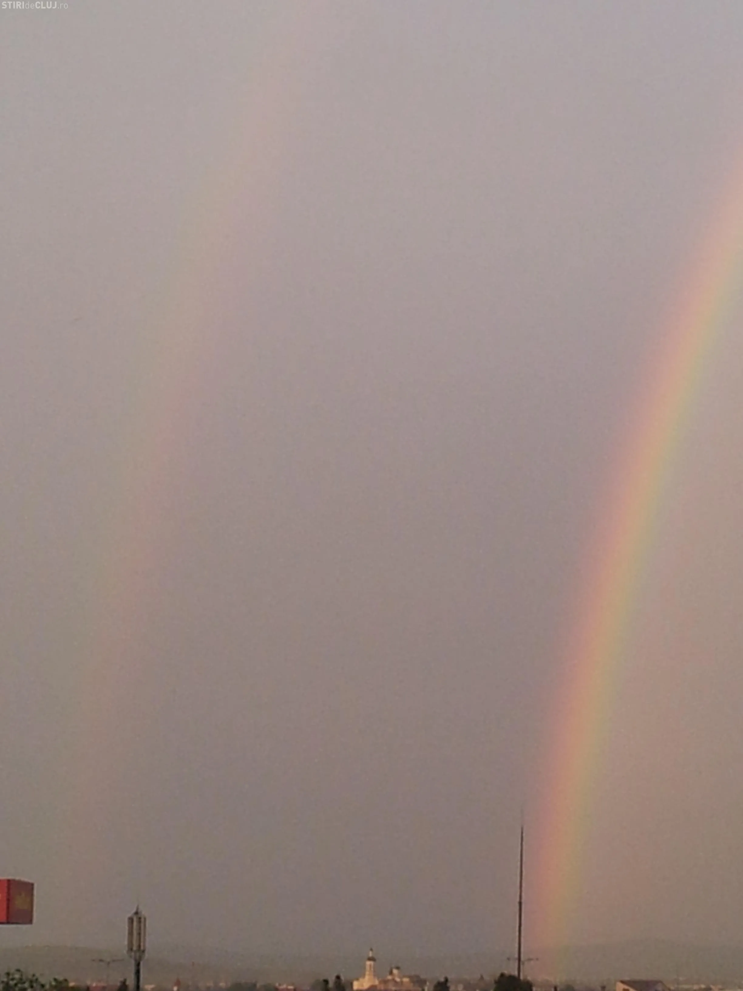 Curcubeu MINUNAT la Cluj, dupa ploaia de vineri seara FOTO
