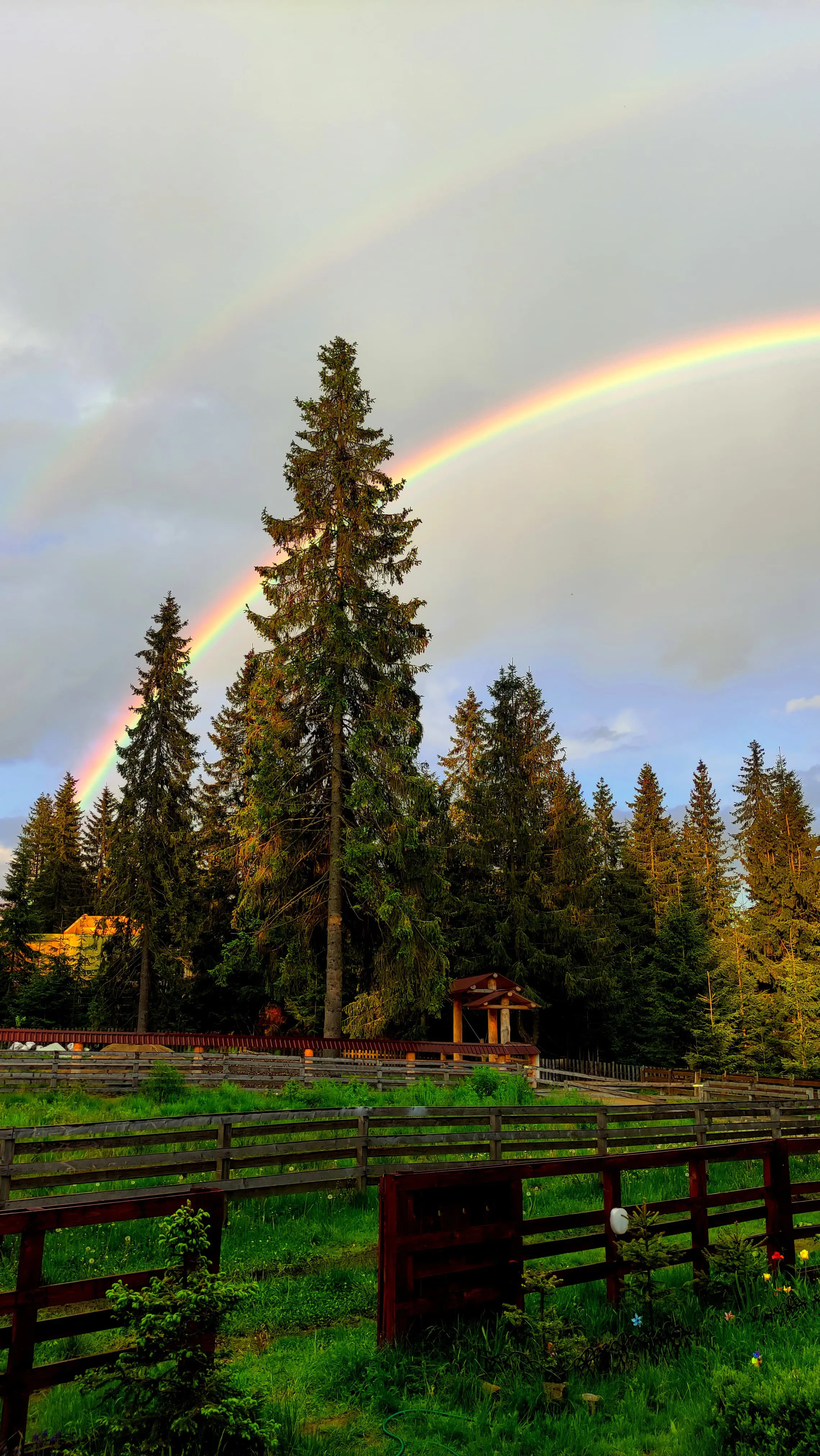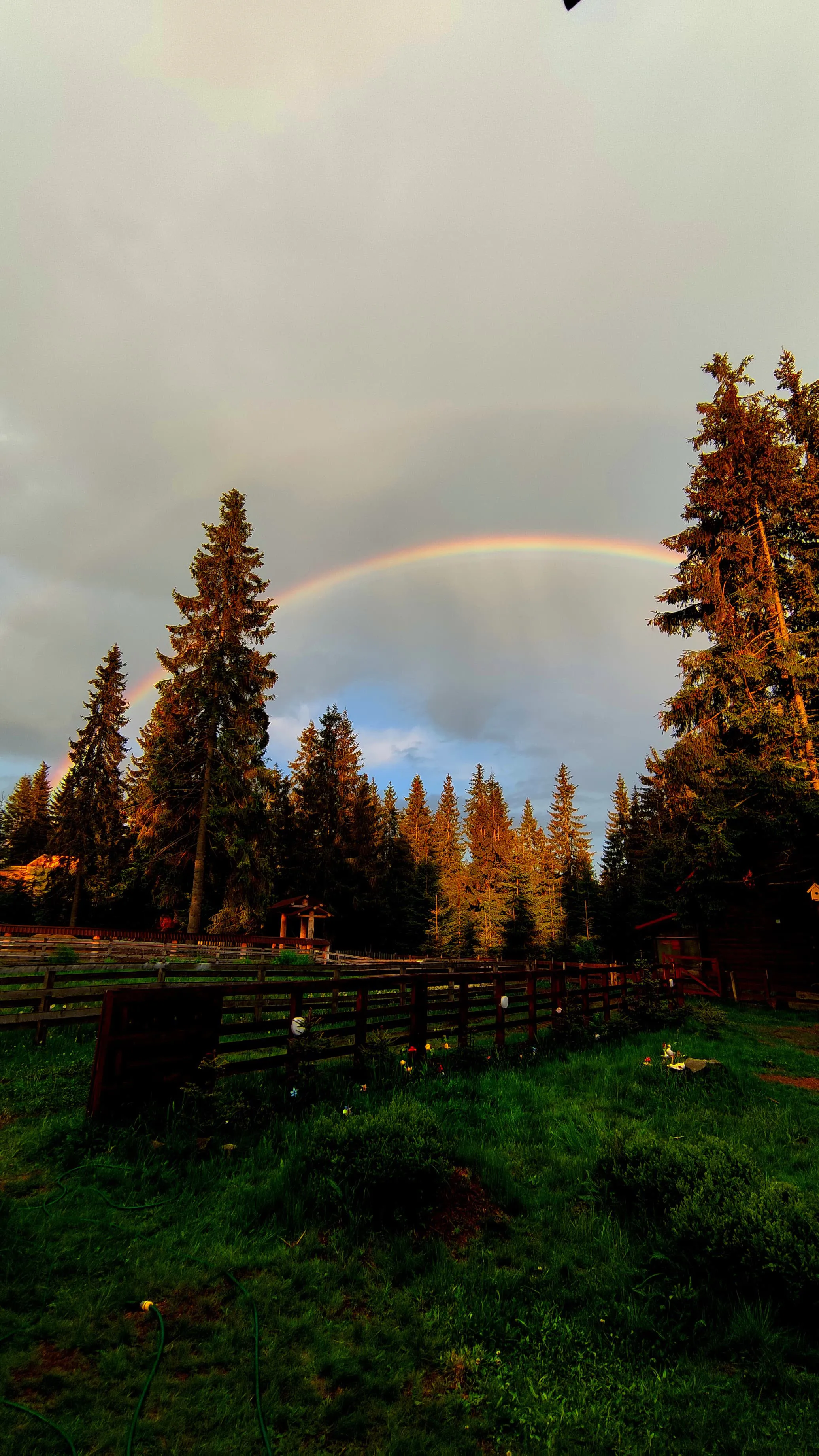 La munte a fost o ploaie de vară vineri seara, iar la final localnicii au fotografiat curcubeul.