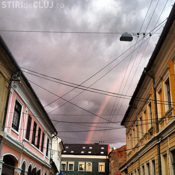 Curcubeul a fost fotografiat de Claudia Rus, dar si de Felix Hornoiu, in centrul orasului.