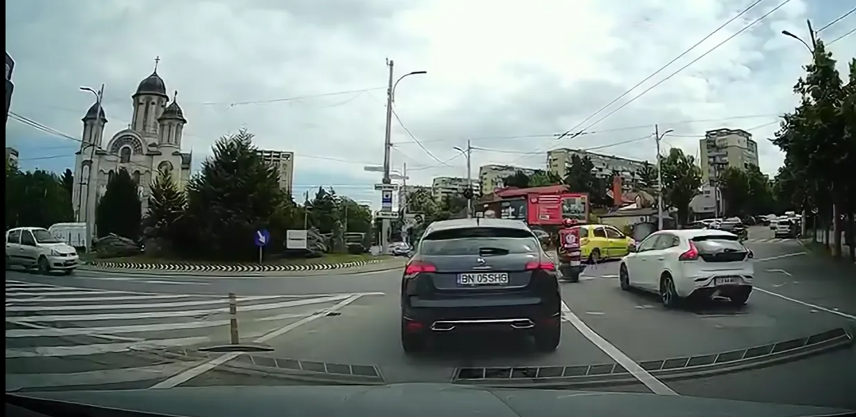 Curierii TAZZ conduc ca demenții prin Cluj/ Curier TAZZ, filmat cum intră în viteză în sensul giratoriu din Gheorgheni, fără nicio ezitare - VIDEO
