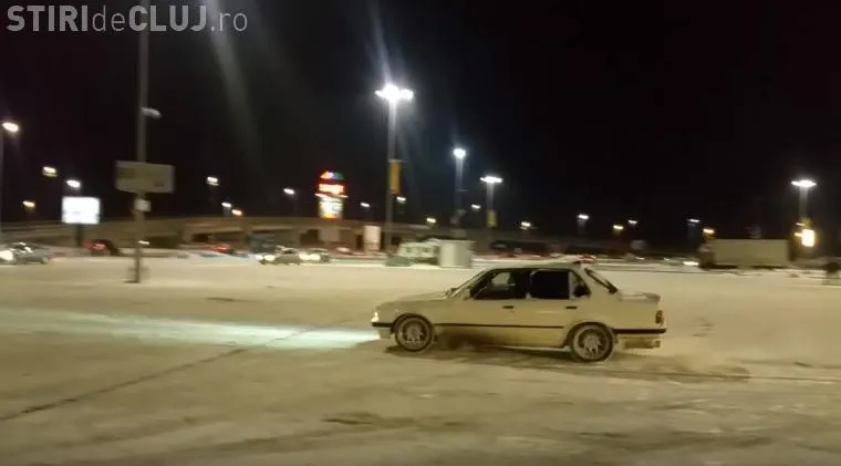 Dacă a nins, șmecherașii au ieșit la DRIFT în parcarea Polus, punând traficul în pericol - VIDEO