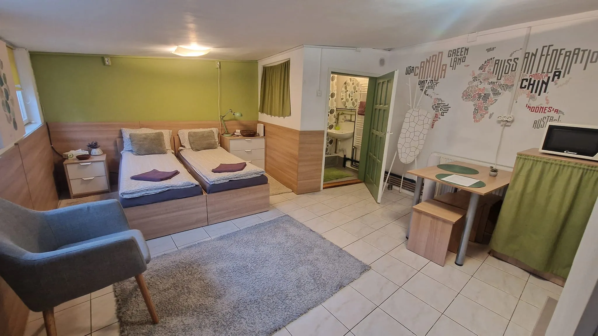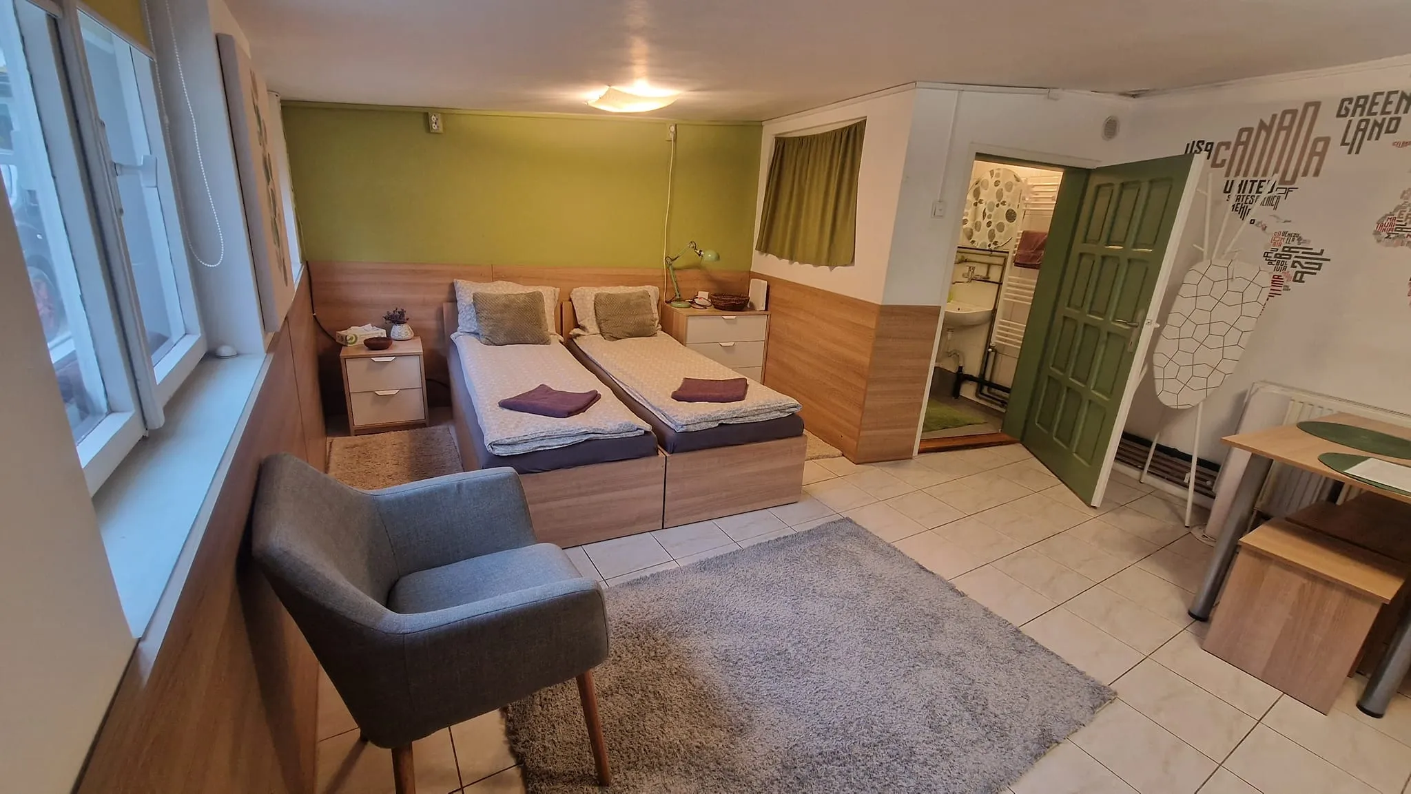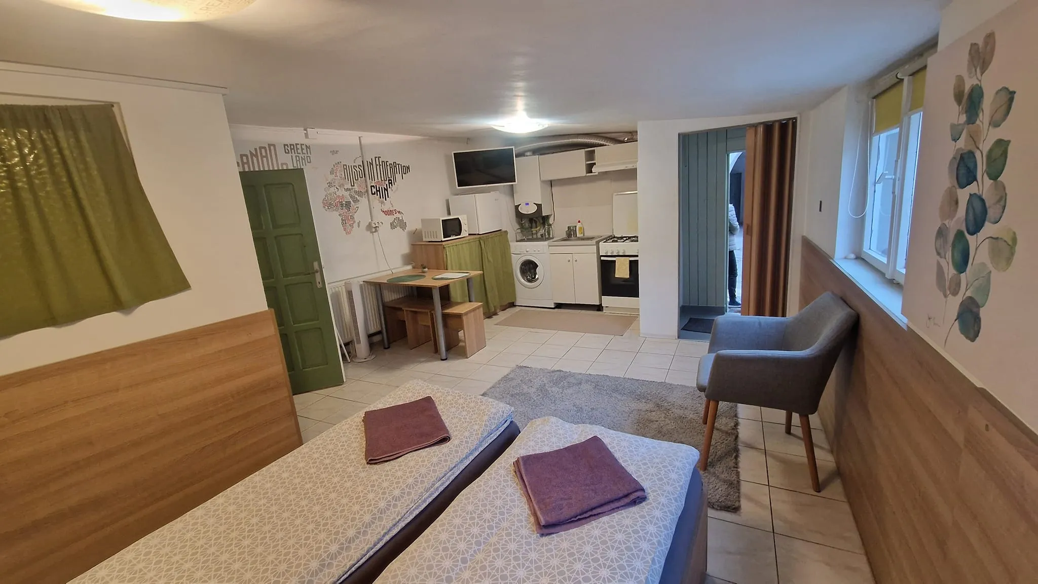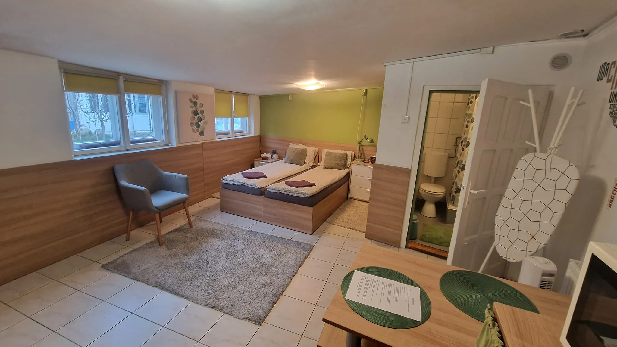 Locuința este cochetă, dar paturile separate aduc aminte de un vagon de dormit. În rest spațiul de 35 de mp este aranjat bine, dar e greu de crezut că doi tineri vor încăpea acolo. Locuința a fost scoasă inițial la închiriat cu prețul de 300 de euro, dar acum agenția a majorat ”scorul” la 320 de euro.