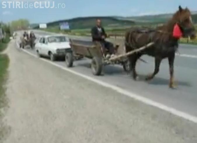 In spatele autoturismului mai circula o caruta, iar "convoiul" se indrepta, cel mai probabil, spre un centru REMAT, unde sa fie predata Dacia la fier vechi.