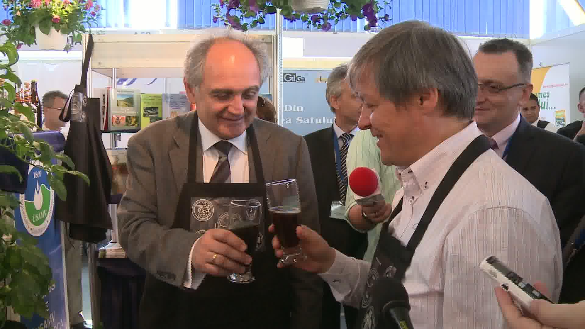Comisarul european pe agricultura, Dacian Ciolos, a baut bere cu gust de cacao si cirese la targul Agraria 2012.