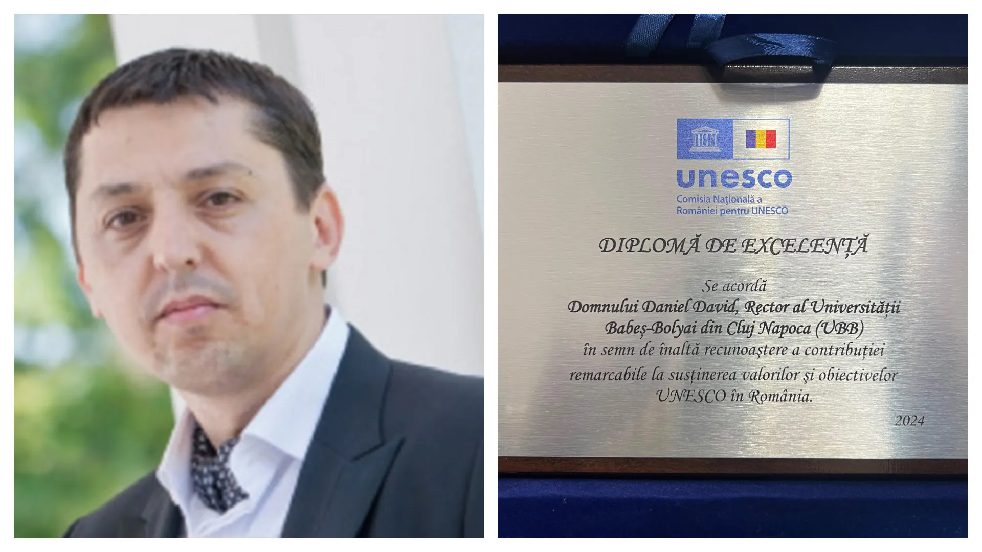 Organizația Națiunilor Unite pentru Educație, Știință și Cultură (UNESCO) i-a acordat rectorului Universității Babeș-Bolyai din Cluj-Napoca (UBB), profesorul universitar Daniel David, Diploma de Excelență a Comisiei Naționale a României pentru UNESCO.