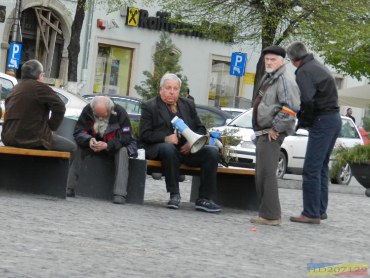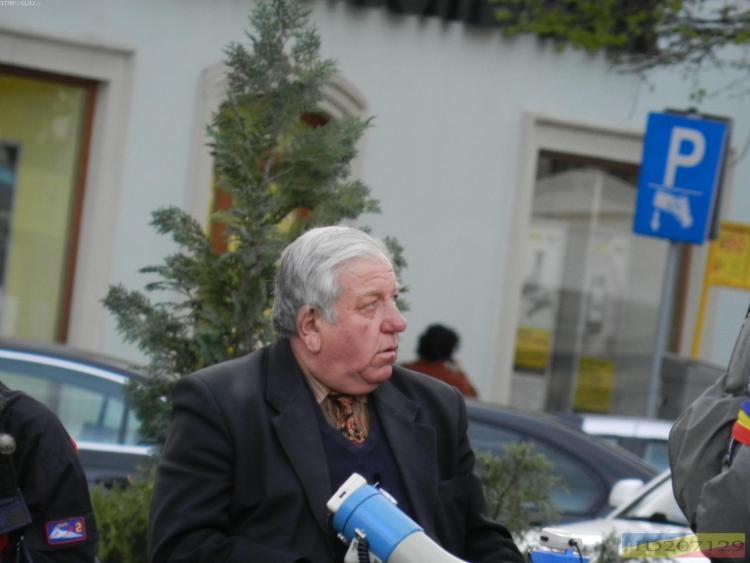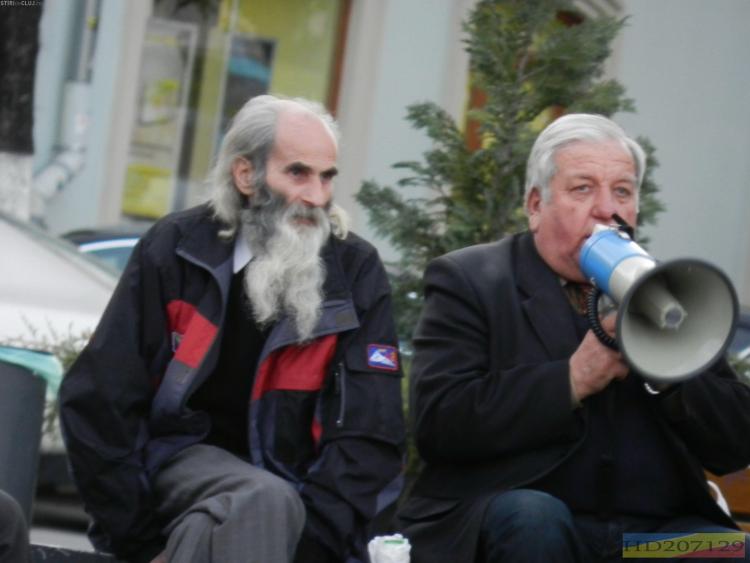 "Sunt in miting de 104 zile, cu o singura intrerupere cand mi-a venit un coleg pe care nu l-am vazut de 37 de ani. Sigur ca atunci a trebuit sa renunt la treaba asta. Voi continua atata cat este necesar, intrucat regimul Basescu este un regim mafiot. Si-a batut joc de o natiune intreaga, iar de oamenii varstnici, oamenii care sunt cei mai defavorizati din punct de vedere social, efectiv ne-au executat, ne-au furat pensiile, au facut ce au vrut cu noi", a spus clujeanul care protesteaza in Piata Unirii de 104 zile.