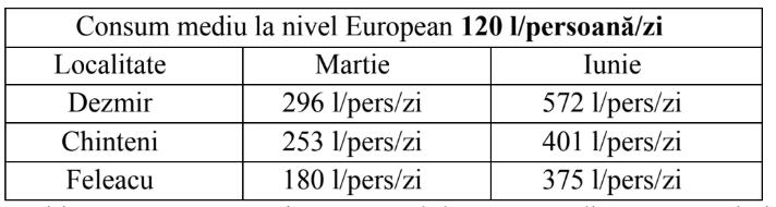 Facem observația că la nivel European, consumul mediu zilnic al unei persoane este de cca. 120 litri/persoană/zi.