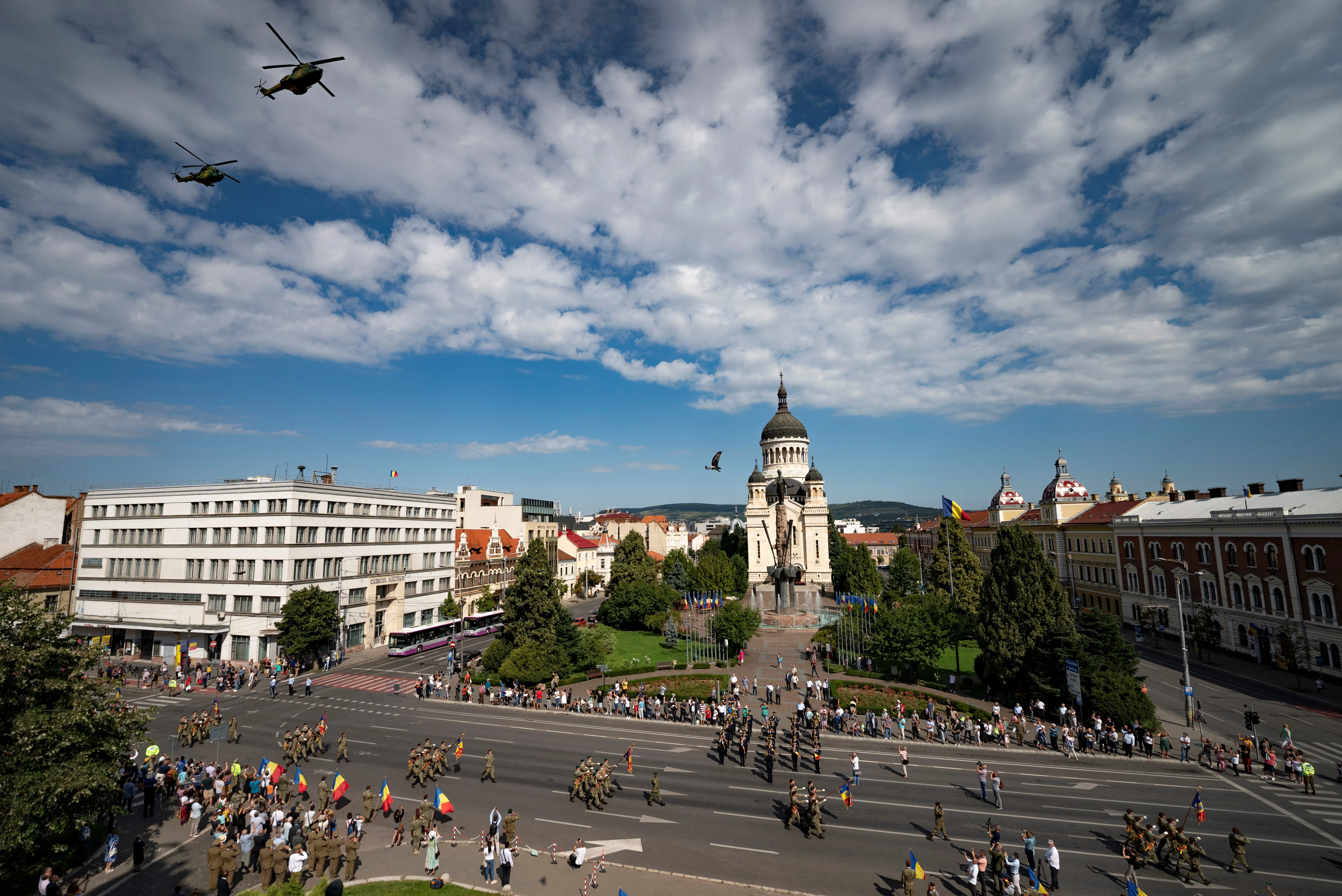 Dispozitivul de defilare care a prezentat onorul în Piața Avram Iancu din Cluj-Napoca, condus de comandantul Diviziei 4 Infanterie „Gemina”, general-maior Dorin Blaiu, a reunit drapele de luptă ale structurilor din subordinea Diviziei 4 Infanterie „Gemina”, primul drapel militar care poartă însemnele României Mari, militari ai comandamentului diviziei, precum și detașamente reprezentative ale marii unități. Defilarea a fost însoțită de survolul elicopterelor IAR 330 SOCAT, respectiv avioanelor MIG-21 LanceR, aeronave aparținând Bazei 71 Aeriană „General Emanoil Ionescu” din Câmpia Turzii.