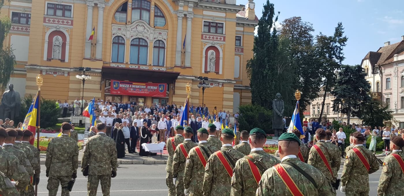 Divizia 4 Infanterie ”Gemina” a aniversat 105 ani activitate printr-o ceremonie în Piața Avram Iancu, desfășurată în prezența șefului Statului Major al Apărării, general-locotenent Daniel Petrescu.