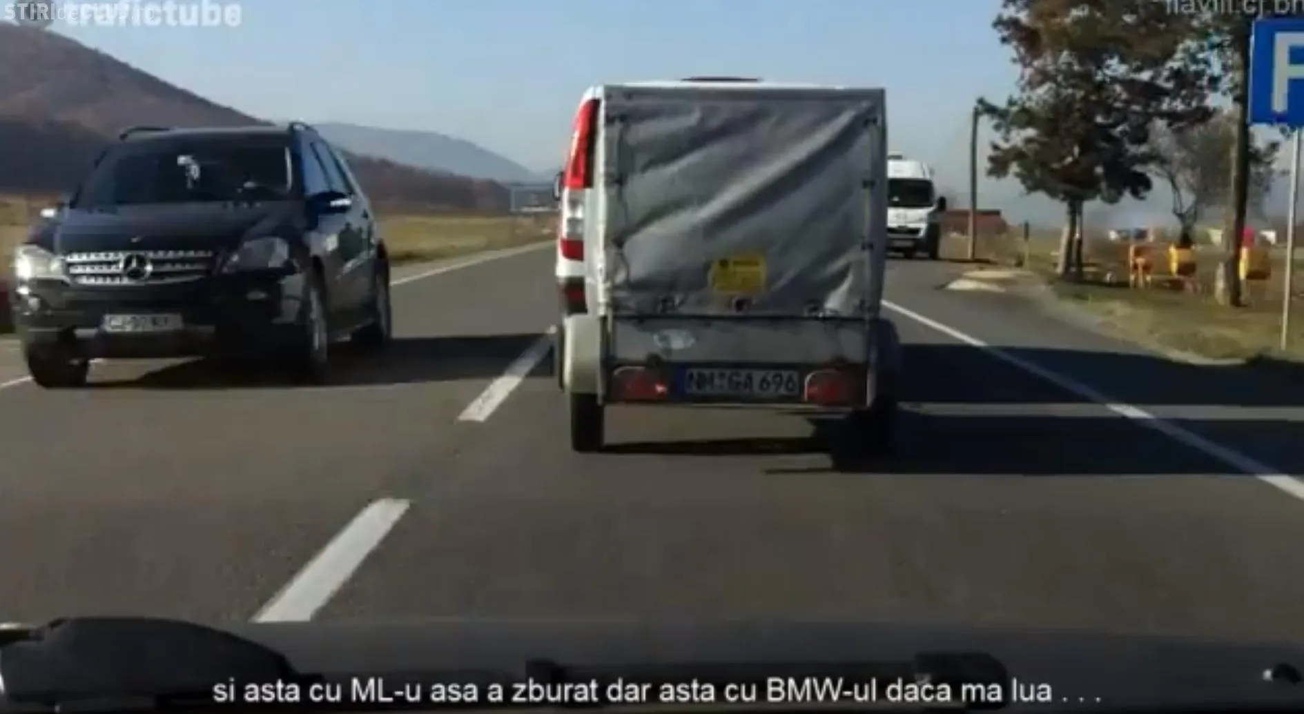 În imaginile filmate pe drumul Cluj - Oradea se vede cum șoferul a încercat să intre în depășire, dar din sens opus venea un Mercedes 4X4. ”Și ăsta cu ML -ul așa a zburat, dar ăsta cu BMW -ul dacă mă lua...”, a scris șoferul, făcând referire și la al doilea autoturism, marca BMW, care circula în spatele Mercedesului și care ar fi putut să îl acroșeze.