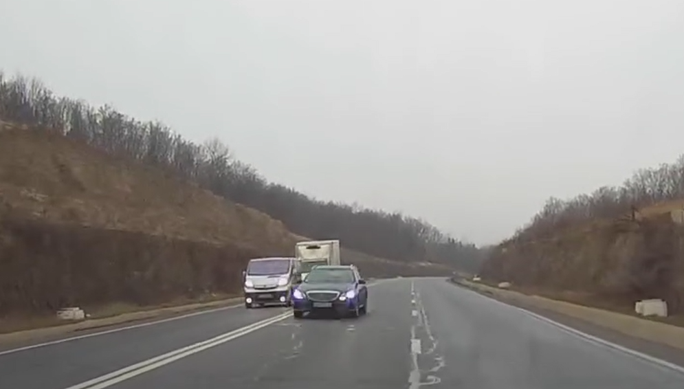 În videoclip se poate observa cum șoferul se avântă într-o depășire riscantă, trecând peste linia dublă continuă și ignorând complet regulile de circulație, dar și siguranța celorlalți participanți la trafic.
