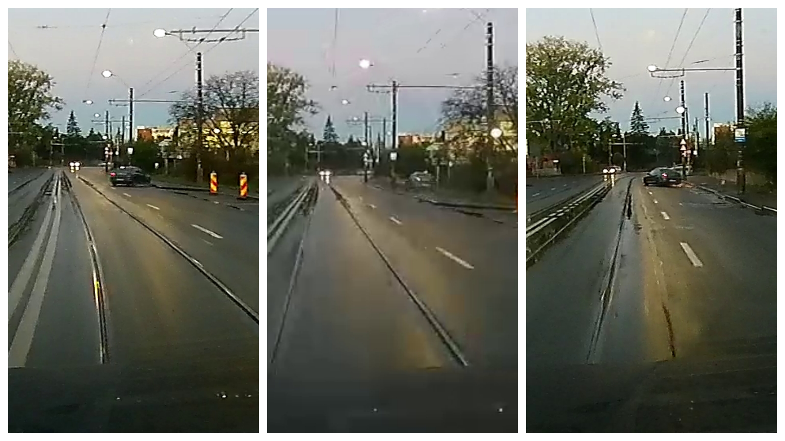 ”Ora 19.00, B-dul Muncii, carosabil umed și condiții de vizibilitate bune. Autoturismul din imagine se deplasa pe direcția Apahida - Cluj Napoca. Doar norocul a făcut sa nu se afle pietoni pe trotuar sau vreo masina pe banda 1. Peugeot-ul din imagine cand a taiat curba, a călcat pe linia de tramvai umeda si a derapat. Consecințele puteau fi mult mai grave. Șoferul nu a pățit nimic, dar masina a fost avariata”, ne-a relatat cel care a filmat totul.