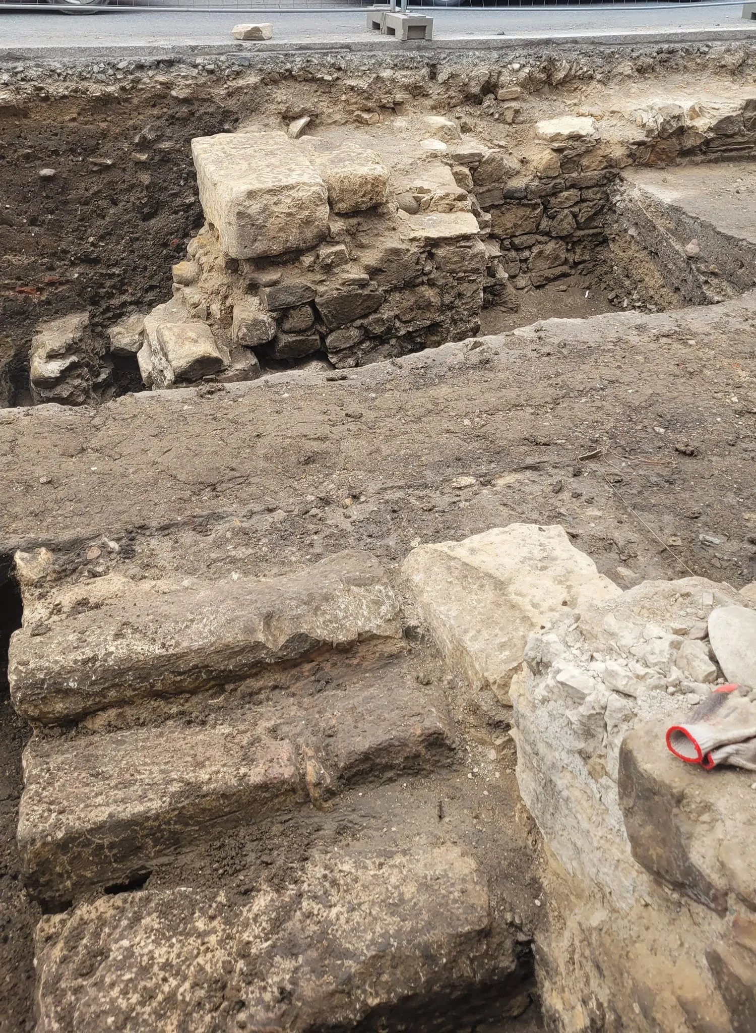 O parte a zidului sudic de apărare a cetății Clujului a fost descoperit la săpăturile de pe strada Universității. Acest lucru demonstrează că aproape oriunde sapi dai peste vestigii.