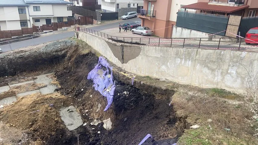 ”Proiectantul mi-a spus că în gropile care apar în poze, la trei metri de zid, este fundația viitorului bloc. Ne este frică acum că drumul o ia la vale. Vin ploile și nu știm ce va urma. Eu stau la etajul cinci, cu doi copii. Cum voi dormi la noapte?”, a mai spus clujeanca.