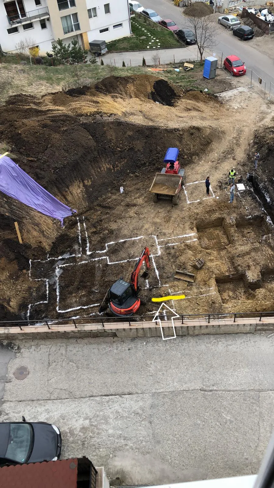 Proiectantul blocului a recunoscut marți după-amiază că ce se vede în poza de mai jos nu este un zid de sprijin, ci chiar fundația viitorului bloc.