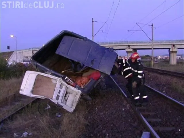 Un microbuz a fost lovit de un tren la trecerea de cale ferata de la intrare din Dezmir, comuna Apahida, in jurul orei 4.40.