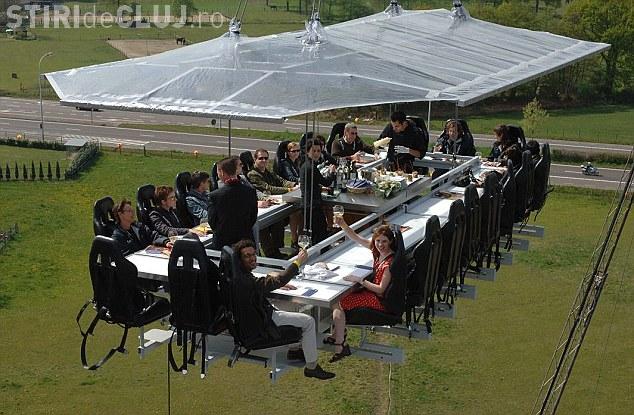 La nivel european o cină în aer costă 160 de euro, dar în România se face numai un eveniment public pe an, restul fiind private.
