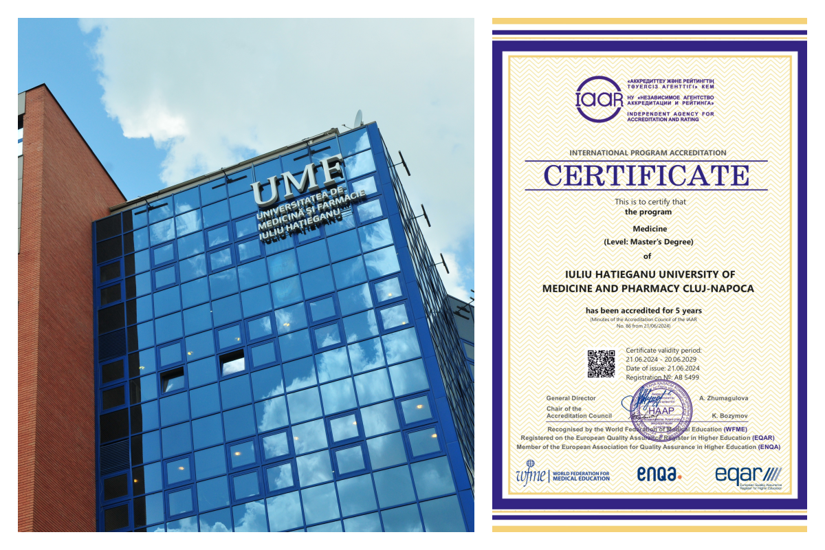 Facultatea de Medicină din cadrul Universității de Medicină și Farmacie „Iuliu Hațieganu” din Cluj-Napoca a obținut acreditarea internațională, pentru următorii cinci ani, din partea Agenției Independente pentru Acreditare și Rating (IAAR, Astana, Kazakhstan), recunoscută de către Federația Mondială de Educație Medicală (WFME). IAAR este înregistrată în Registrul European de Asigurare a Calității pentru Învățământul Superior (EQAR) și este membră cu drepturi depline a Asociației Europene pentru Asigurarea Calității în Învățământul Superior (ENQA).