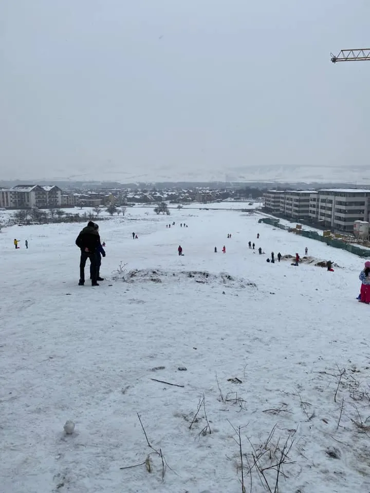 ”Salvez poza ca sa le arat la nepoti cum ne dadeam cu sania “pe dealul asta plin de blocuri” :))”