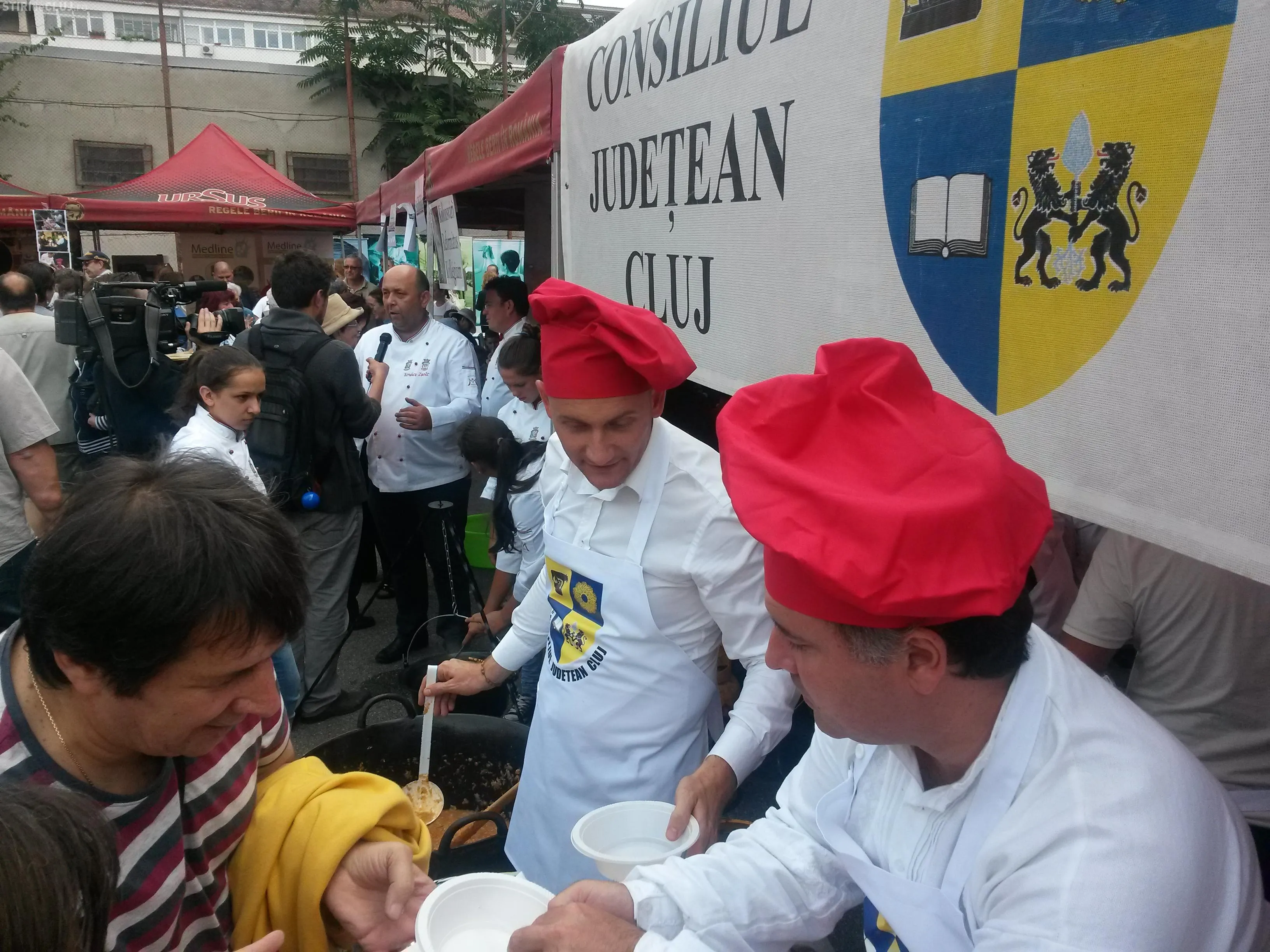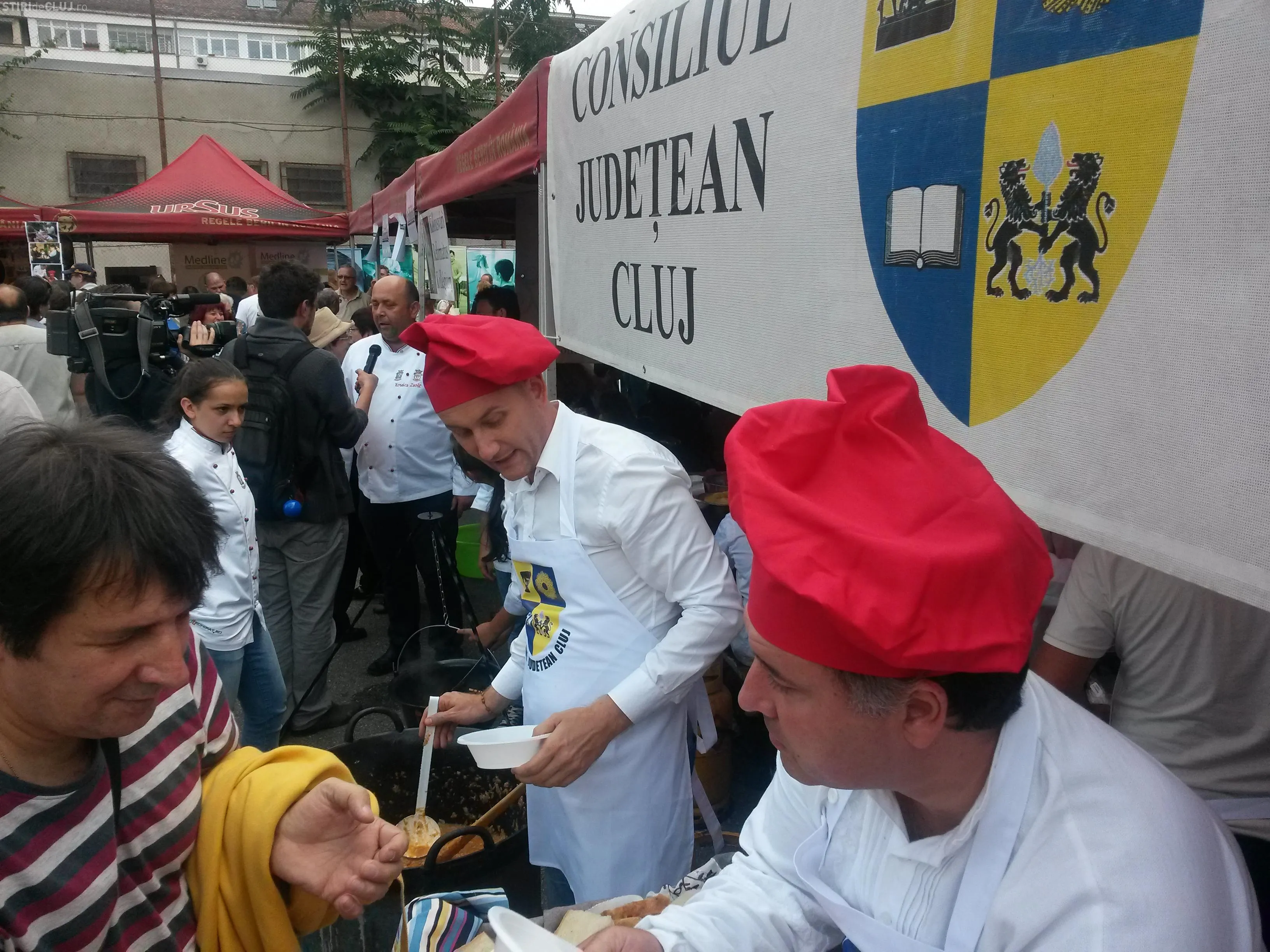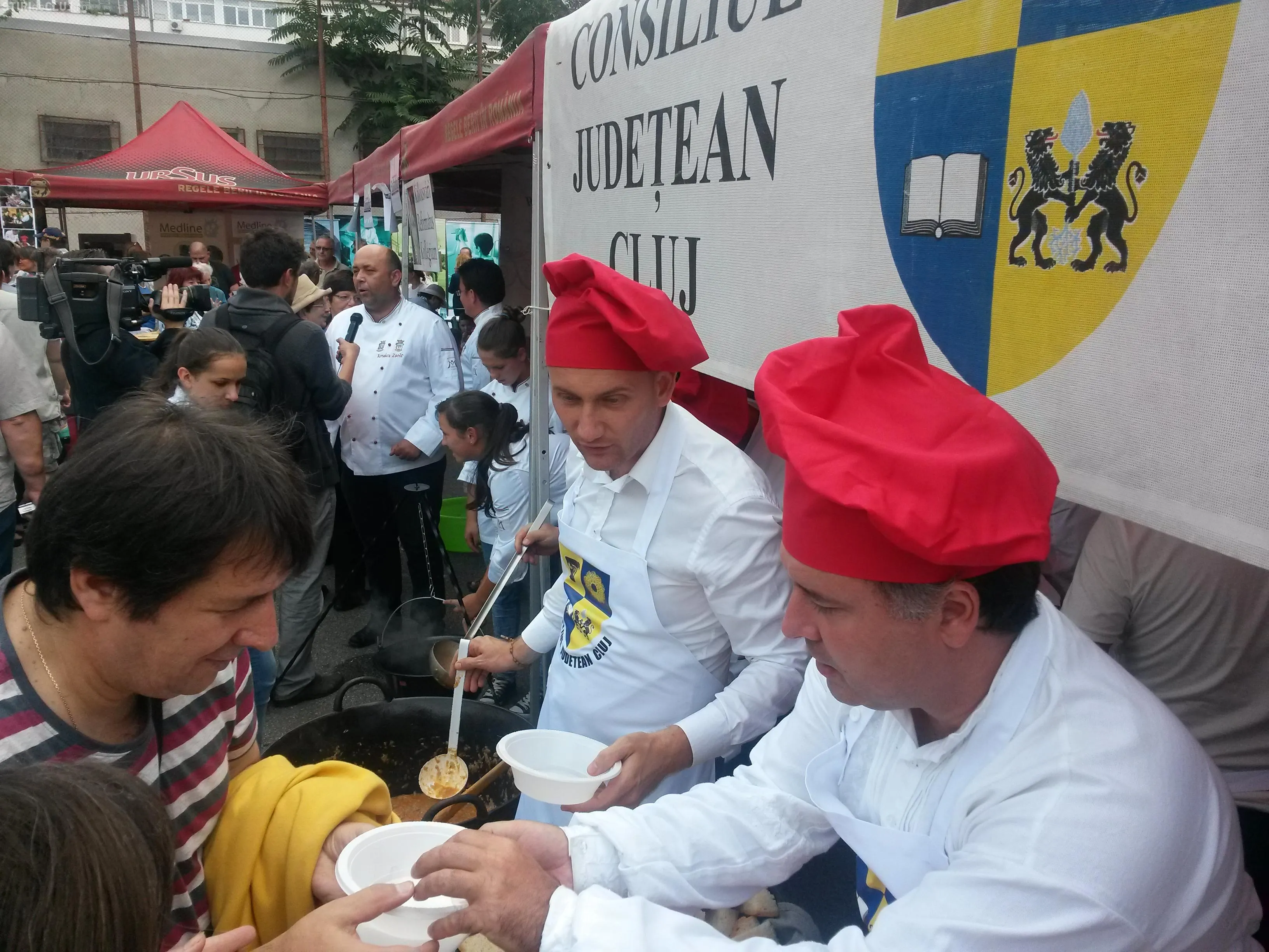 Vicepreședintele CJ Cluj, Vakar Istvan, i-a servit pe clujeni cu porții din ceaun. ”Am făcut treabă bună și oamenii s-au bucurat. Am adus pâinea făcută în cuptor la Moldovenești și asta a fost un alt plus al echipei noastre”, a adăugat Vakar Istvan.