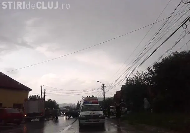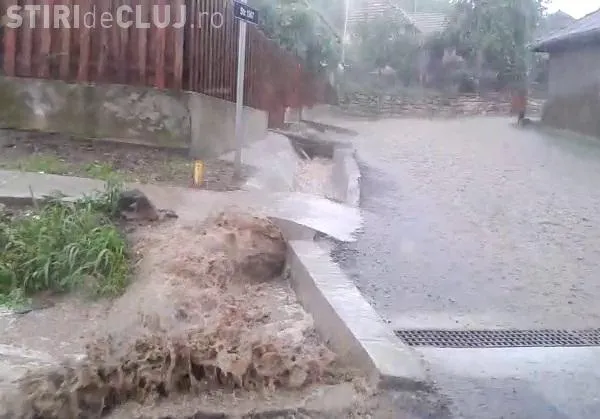 Drumul Național 1 C Cluj-Napoca - Dej a fost blocat duminică după amiaza în zona municipiului Dej de o rupere de nori.