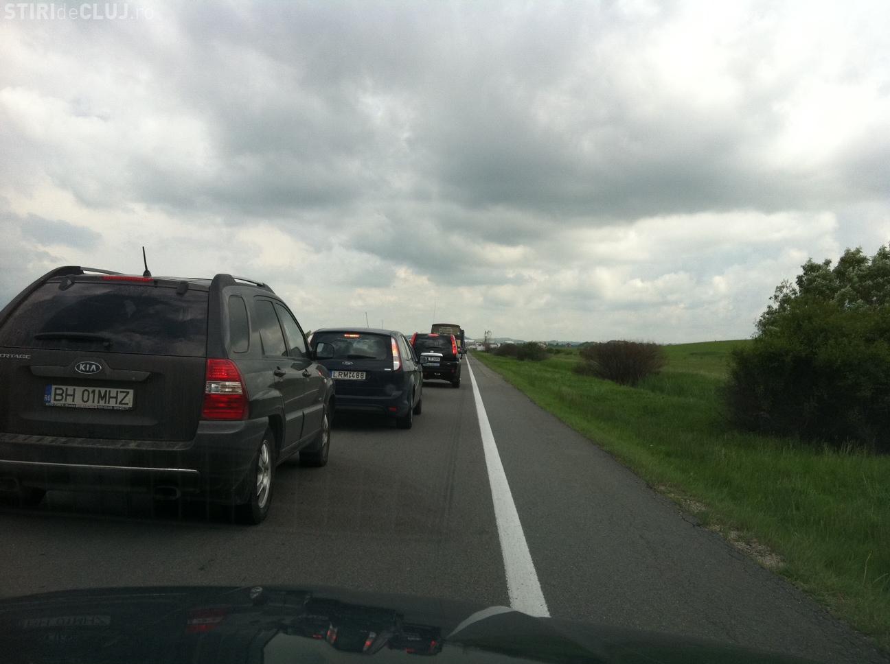 Drumul National 1, la intrare in Huedin dinspre Oradea, este blocat pe mai multi kilometri.