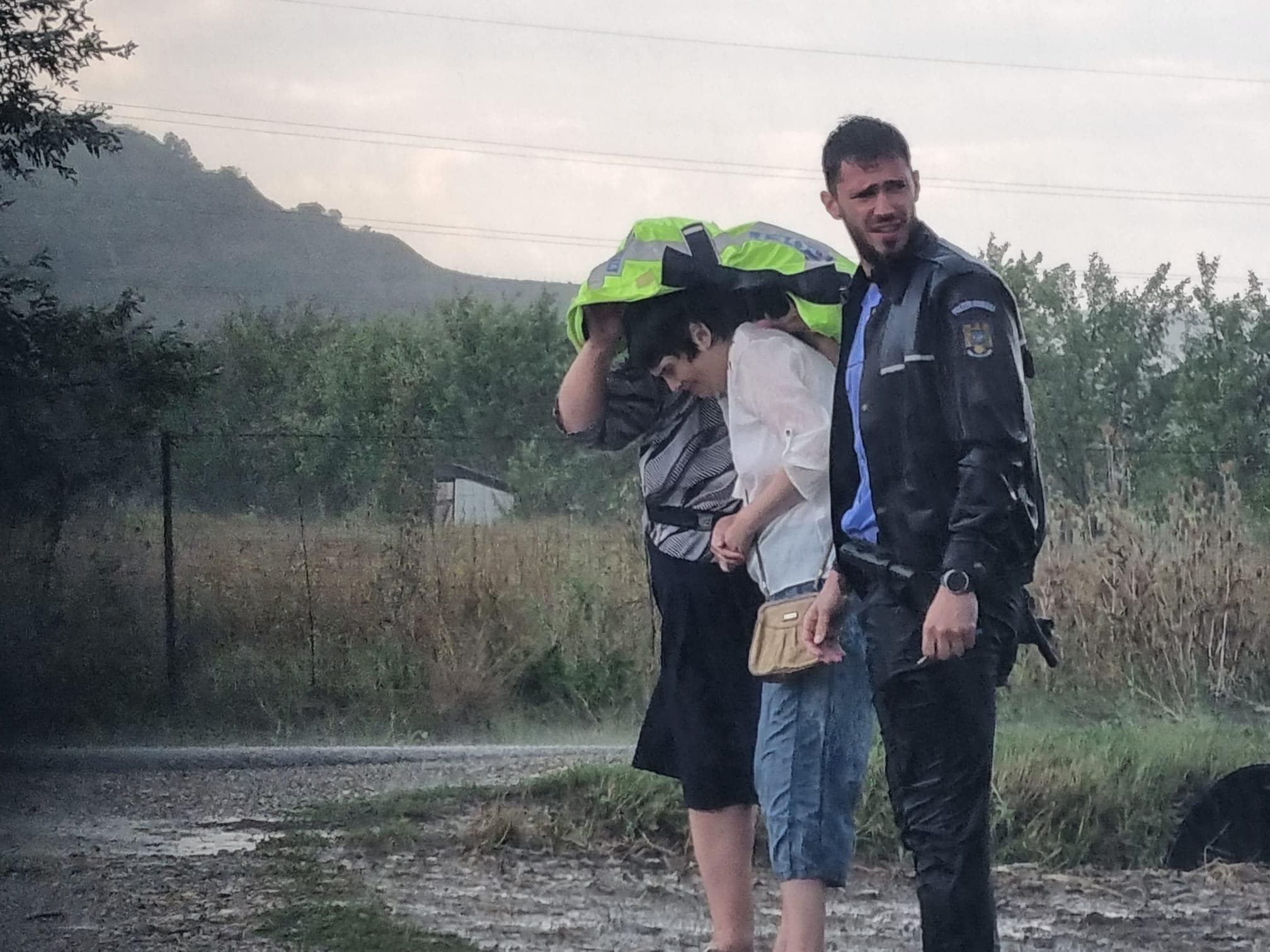 Poza săptămânii vine de la Nicula, unde la praznicul Adormirii Maicii Domnului un polițist și-a cedat geaca unor femei, în timpul furtunii.