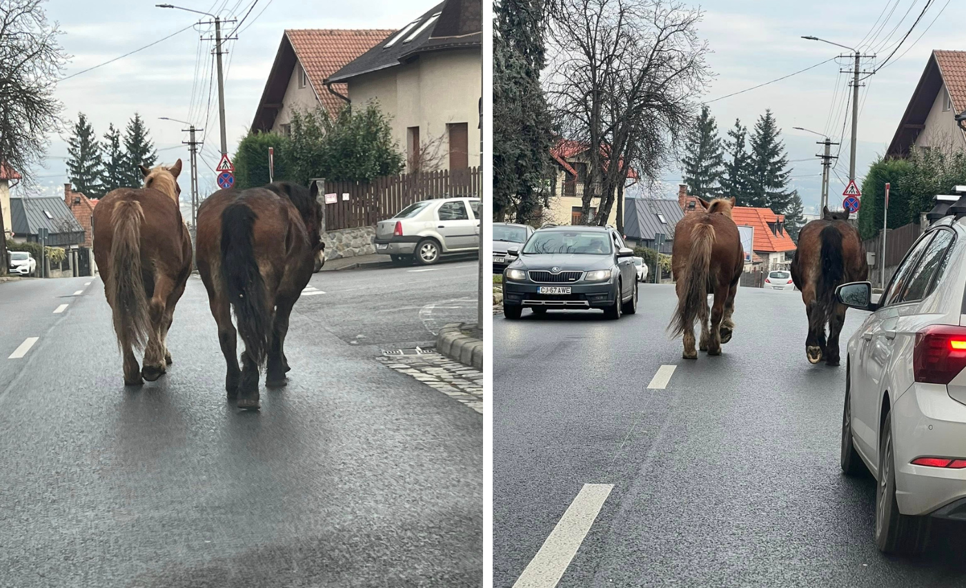 Clujenii care au trecut astăzi pe strada Gruia au avut parte de o surpriză rară: doi cai se plimbau liberi pe drum, fără să fie însoțiți de stăpâni. Incidentul a atras imediat atenția trecătorilor și a șoferilor, unii oprindu-se să îi fotografieze