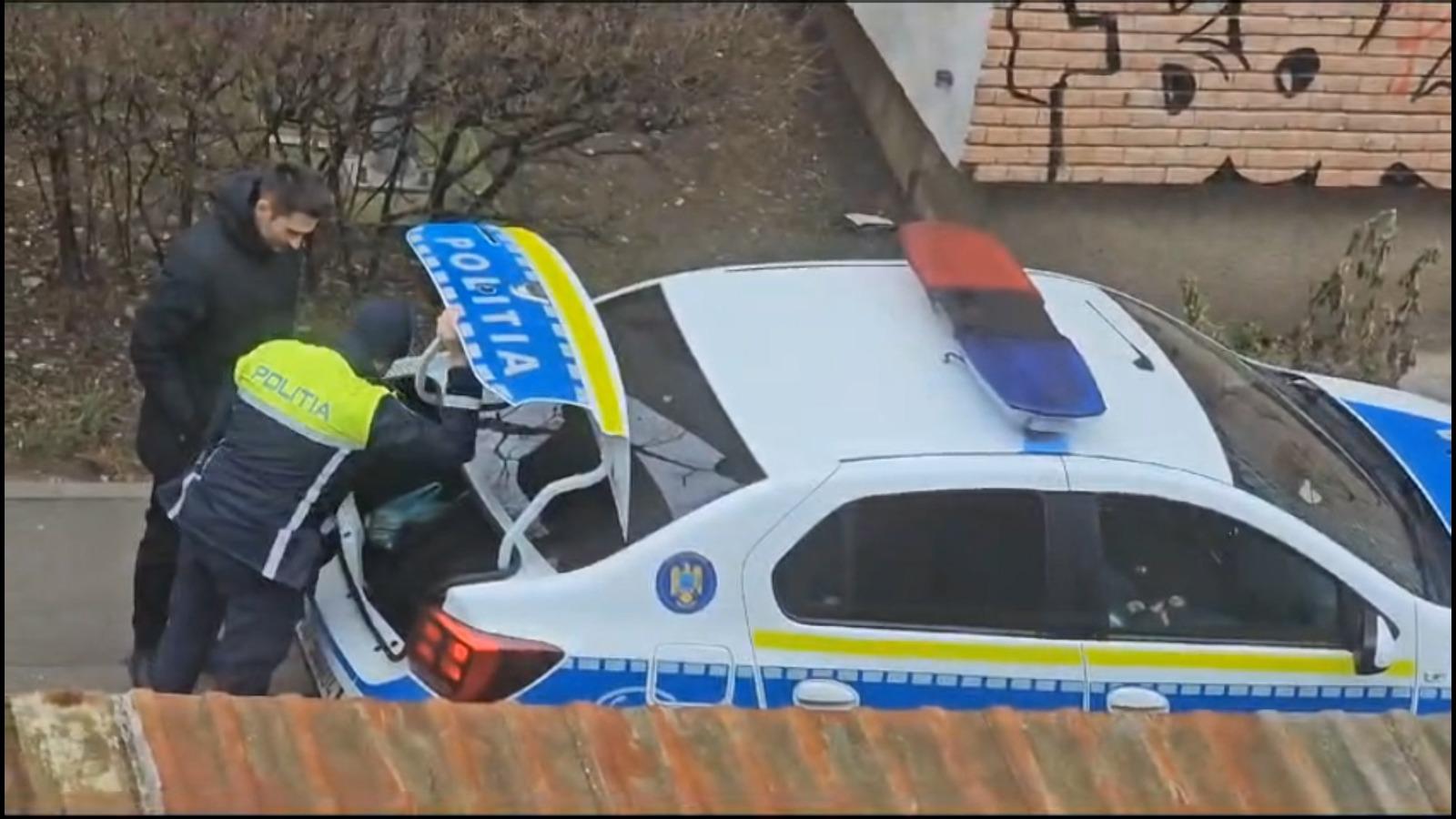 Doi polițiști din Cluj, filmați în timp ce își împărțeau petarde chiar din portbagajul unei autospeciale. Unul dintre ei era în timpul programului