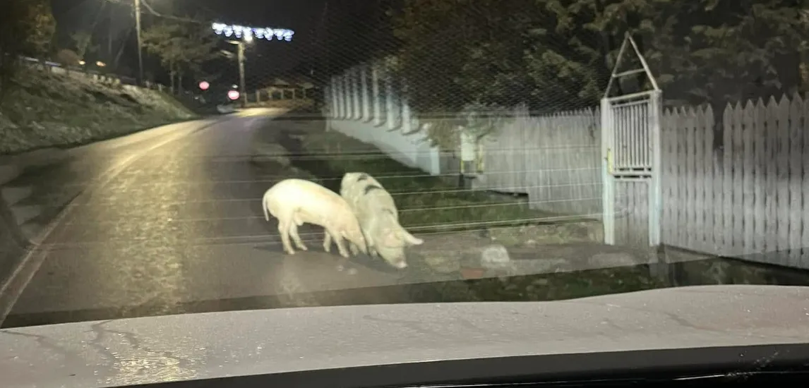 Doi porcusori au „evadat” în această seară dintr-o curte din Feleacu, județul Cluj, și au pornit spre „pârtia” din localitate! Localnicii se amuză pe Facebook, în speranța că proprietarul îi va recupera înainte de Crăciun
