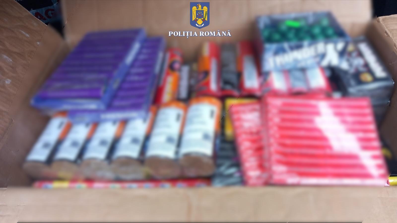 În urma perchezițiilor derulate, polițiștii au identificat și ridicat cantitatea de 100 de kilograme de articole pirotehnice, din categoriile P1, F1, F2, F3, în valoare totală de 10.000 de lei.