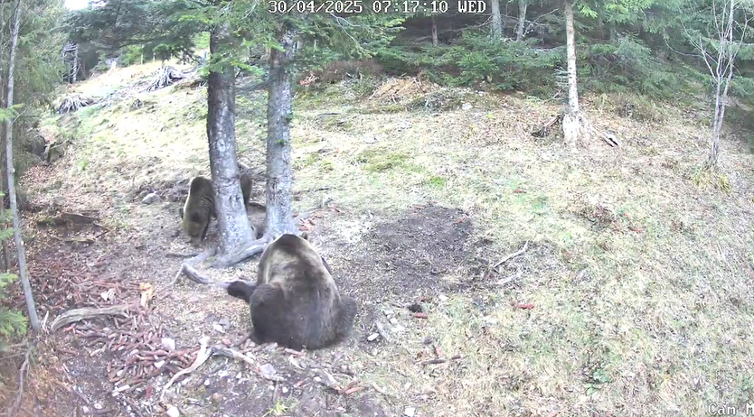 Ursuleții – care păreau mai degrabă doi frați blânzi decât temutele carnivore ale pădurii – au mâncat, s-au odihnit și au transformat tot momentul într-o veritabilă „petrecere de familie”. Spre dimineață, după un maraton culinar și multe clipe de leneveală, au părăsit zona la fel de liniștiți cum au venit.