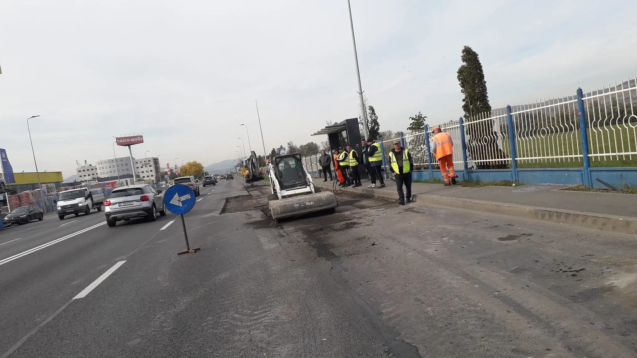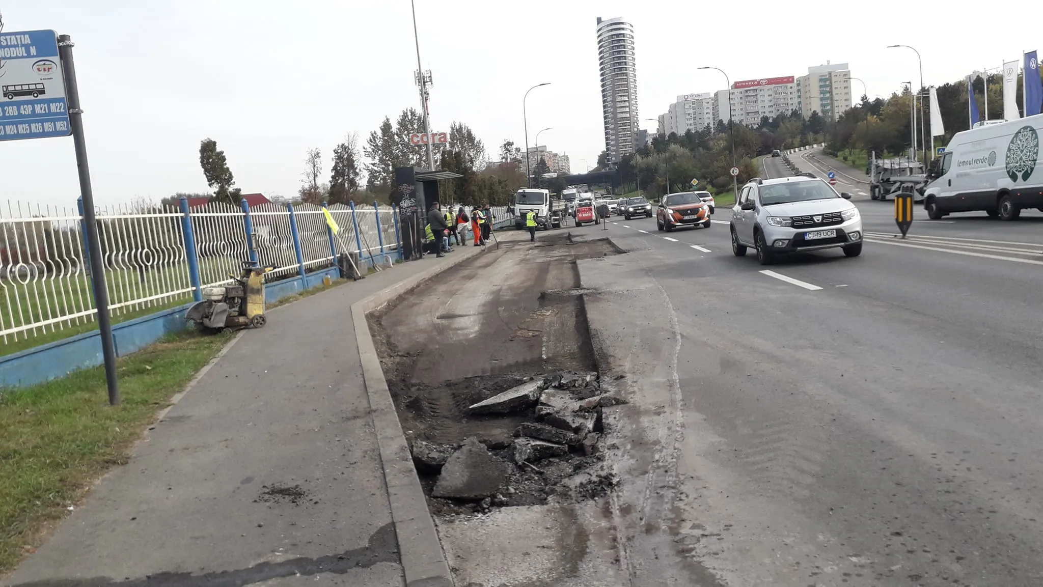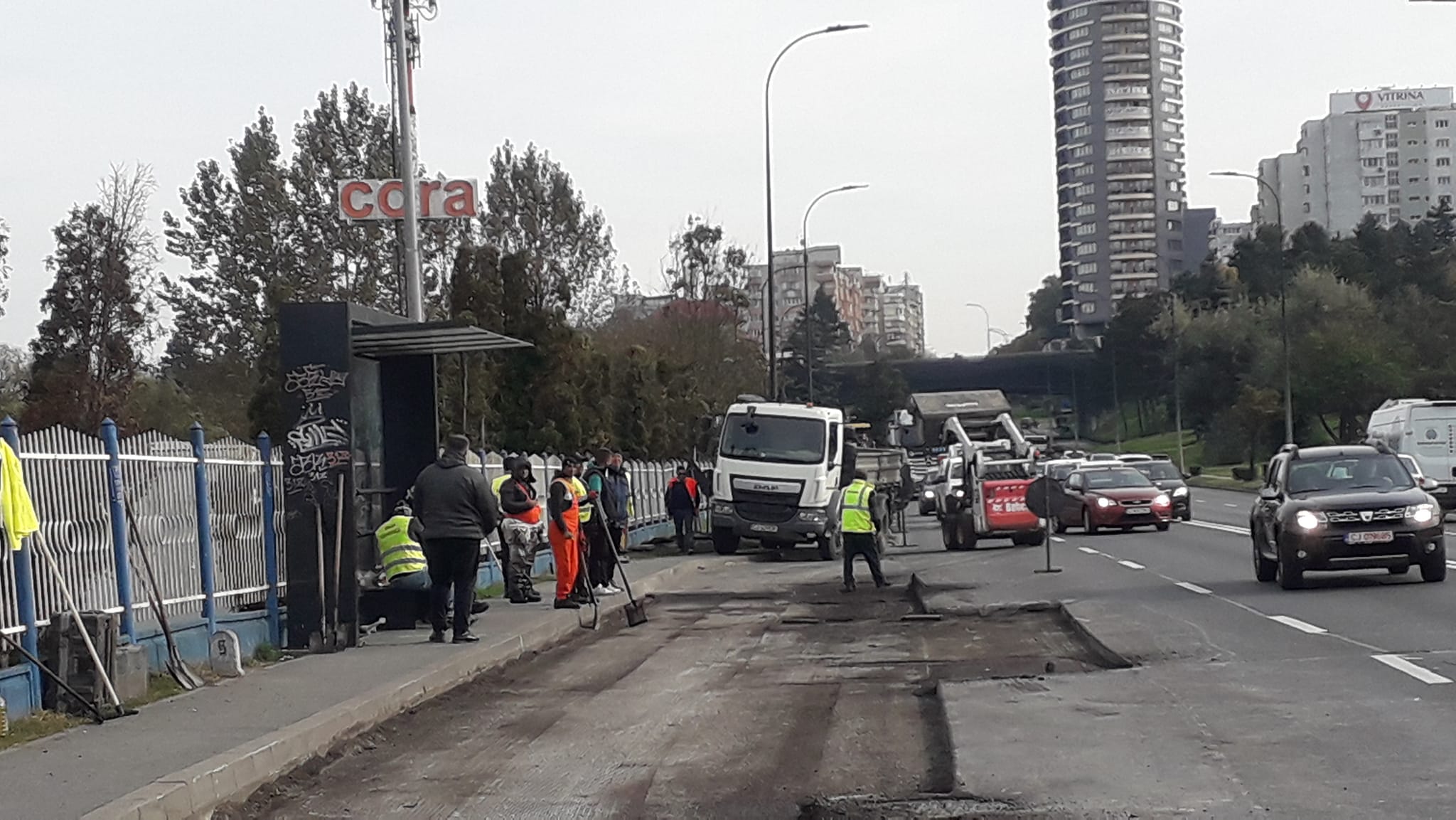 Muncitorii lucrau în stația de autobuz, de după podul N.