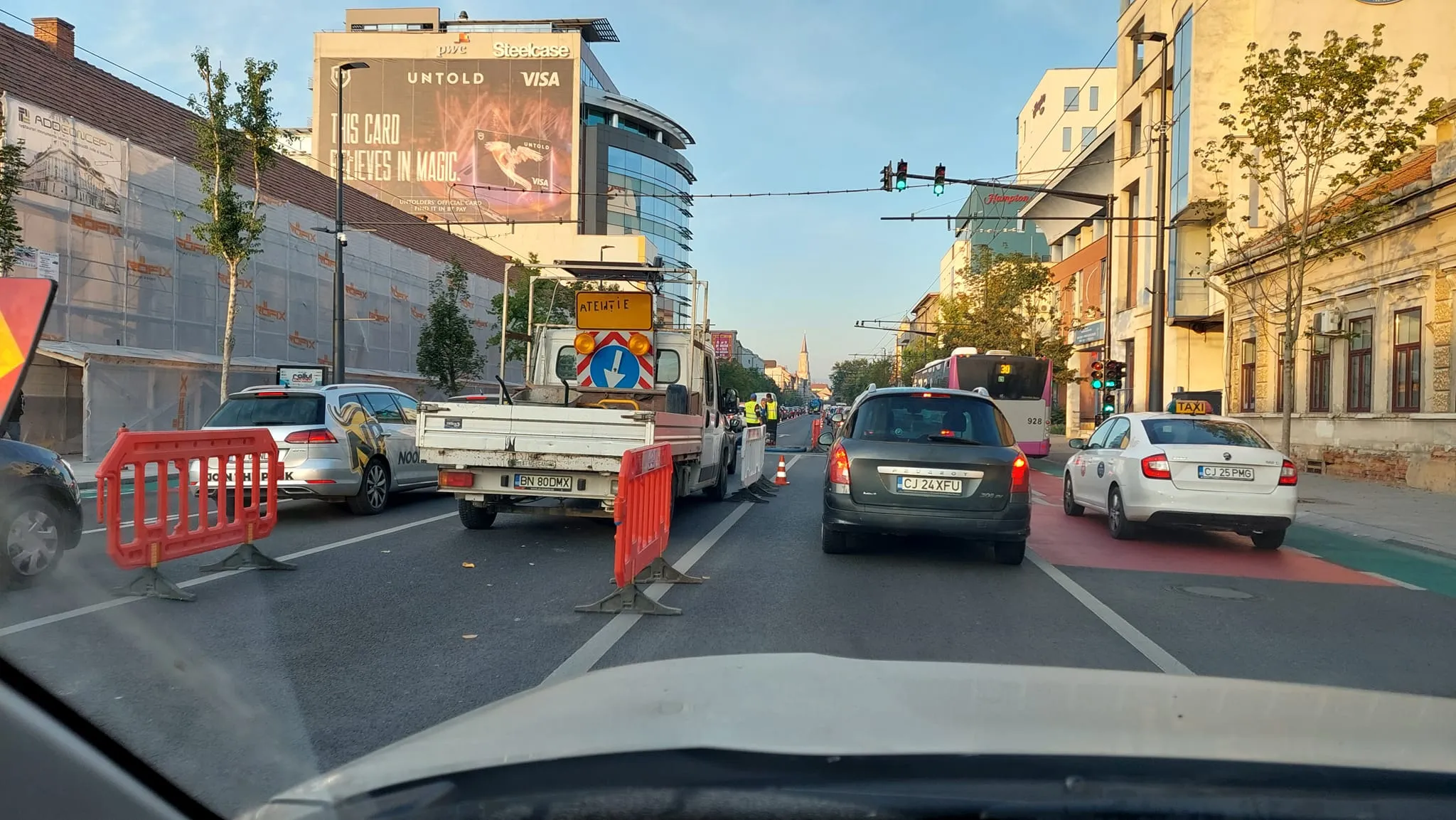 Studenții încă nu au revenit la facultățile din Cluj, iar orașul este deja blocat odată cu începerea școlii. Autoritățile nu au intervenit de ani de zile cu proiecte majore de infrastructură care ar putea decongestiona traficul, ba chiar mai mult îi lasă pe muncitori să repare o stradă centrală chiar la o oră de vârf, când părinții își duc copiii la școală.