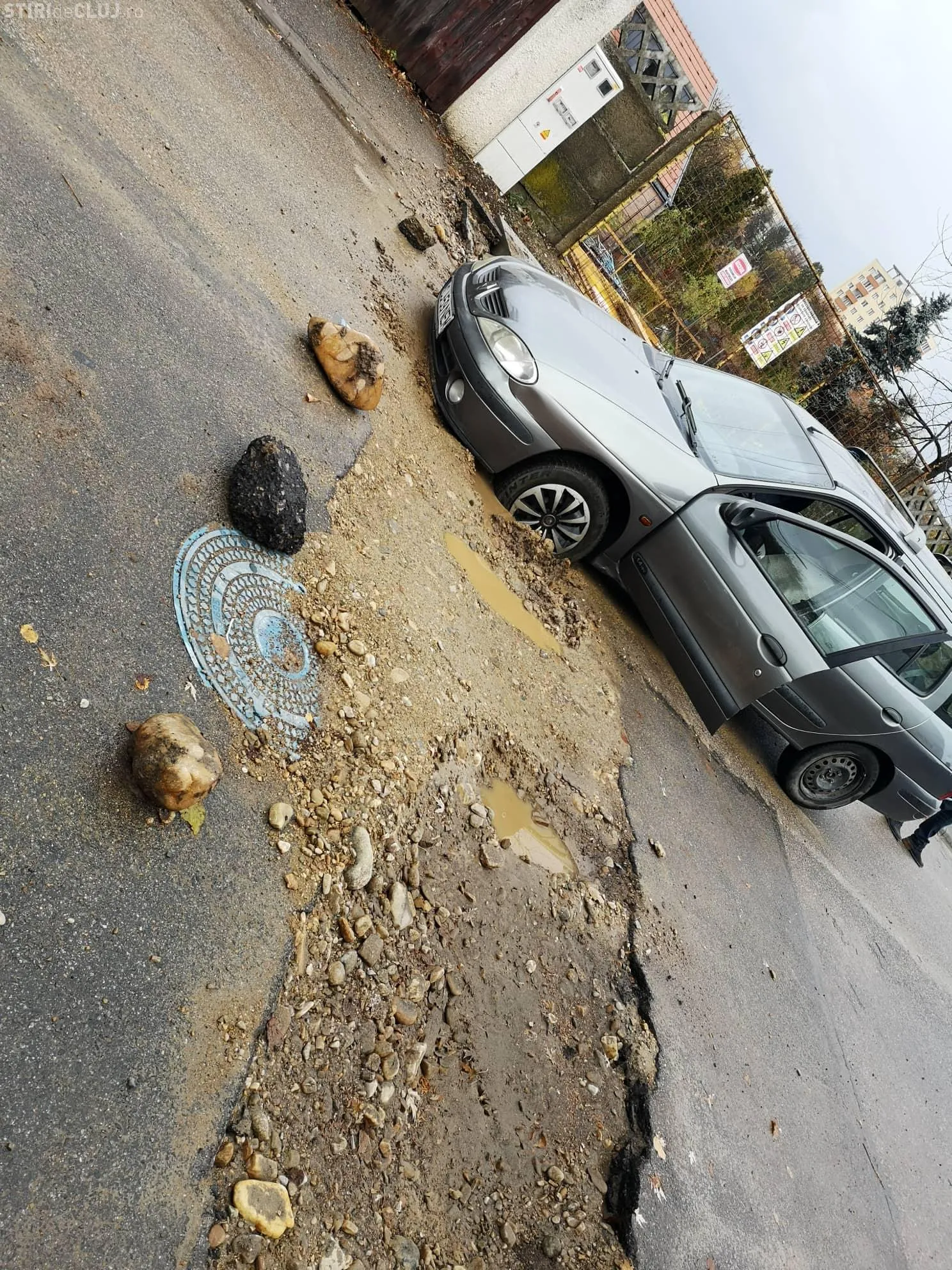 ”... Dorel a fost pe aici la lucrări... Așa se lasă o stradă, unde locuiesc cam 90 de familii... Duminică, a 3-a mașină blocată în șanț... Trist nepăsarea unor muncitori, foarte trist, miracol ca nu s-a rupt roata...”, ne-a relatat o clujeancă.