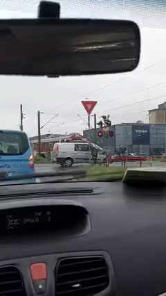 ”În urma verificărilor efectuate de către polițiștii Secției Regionale de Poliție Transporturi Cluj, s-a stabilit faptul că o autoutilitară ar fi oprit la trecerea la nivel cu calea ferată prevăzută cu barieră, situată pe strada Tăietura Turcului, fără a păstra o distanță corespunzătoare față de aceasta, astfel că la coborâre, bariera a blocat autoutilitara.