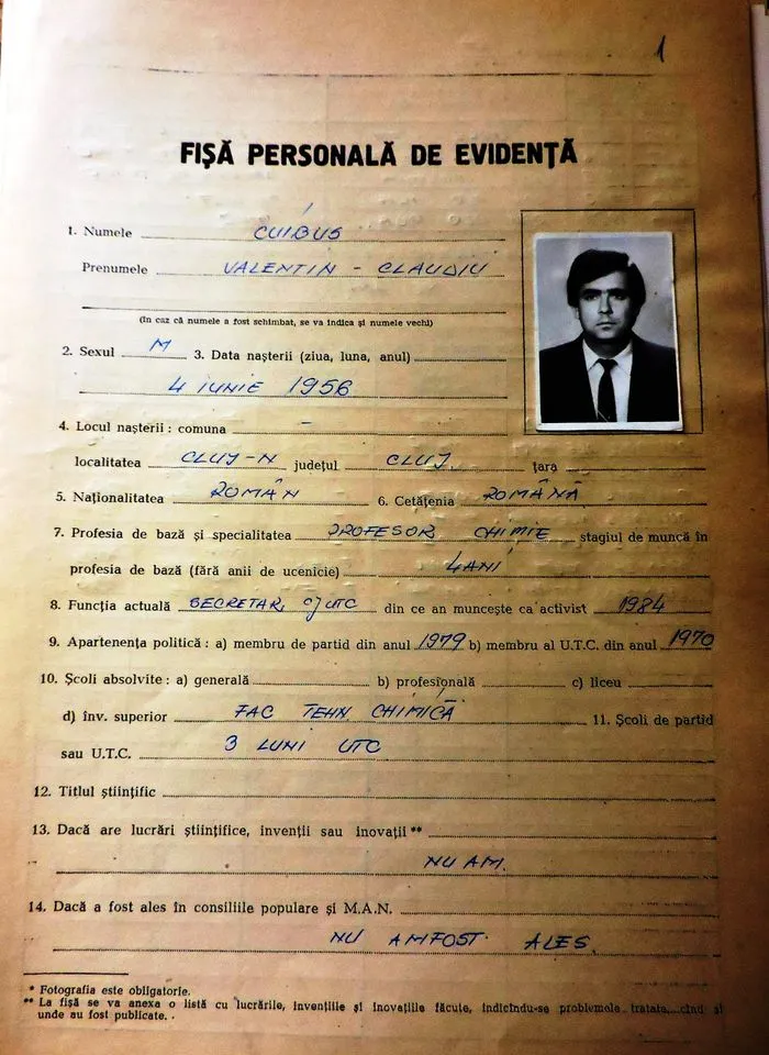 Subprefectul Clujului, Zoltán Györke, a publicat pe pagina sa personală de Facebook dosarul de cadre UTC al fostului șef al Inspectoratului Școlar Județean Cluj, actual candidat la Primăria Cluj-Napoca din partea PSD, Valentin Cuibus.