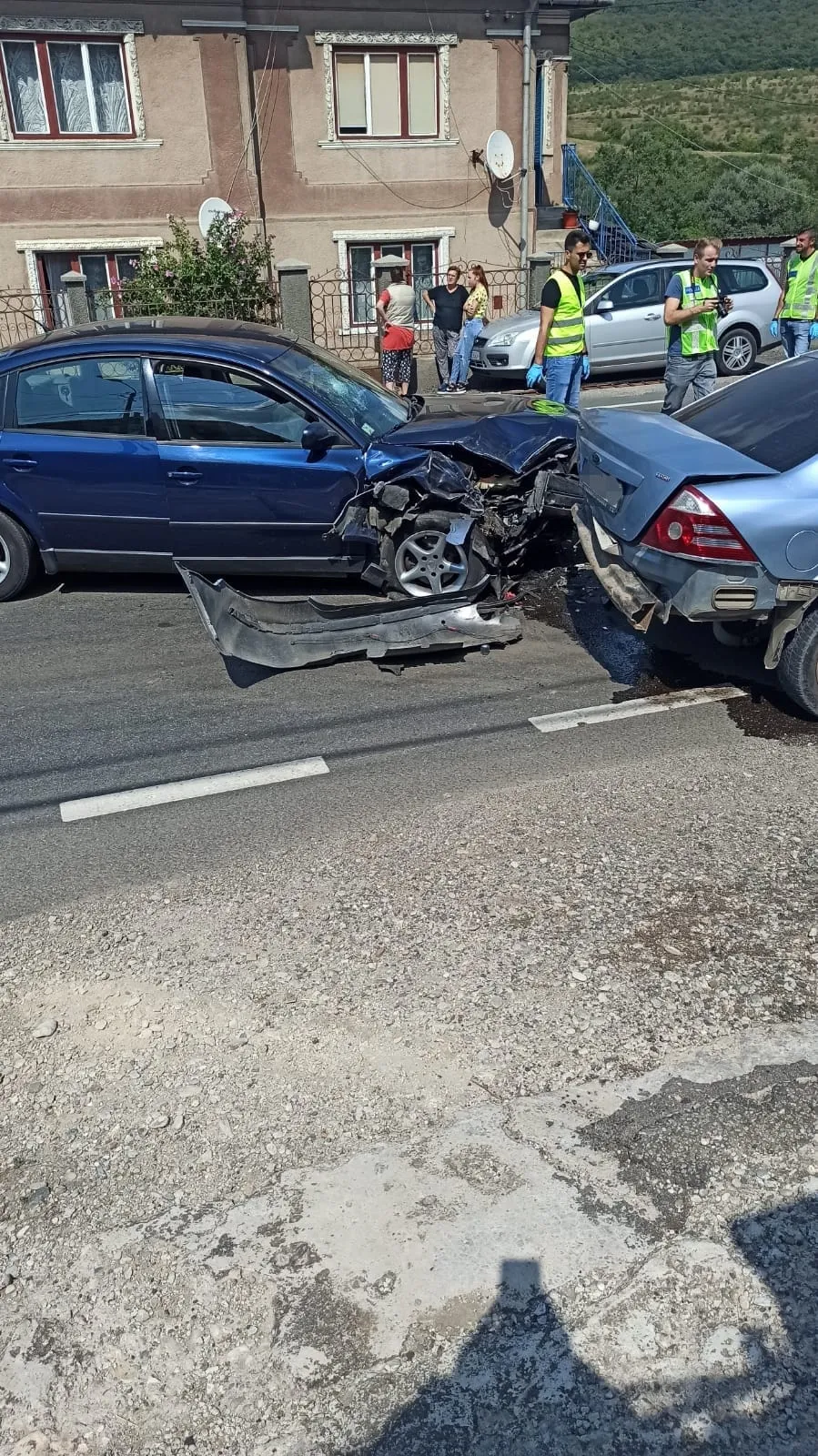 “Trei autoturisme, coliziune fața-spate.
