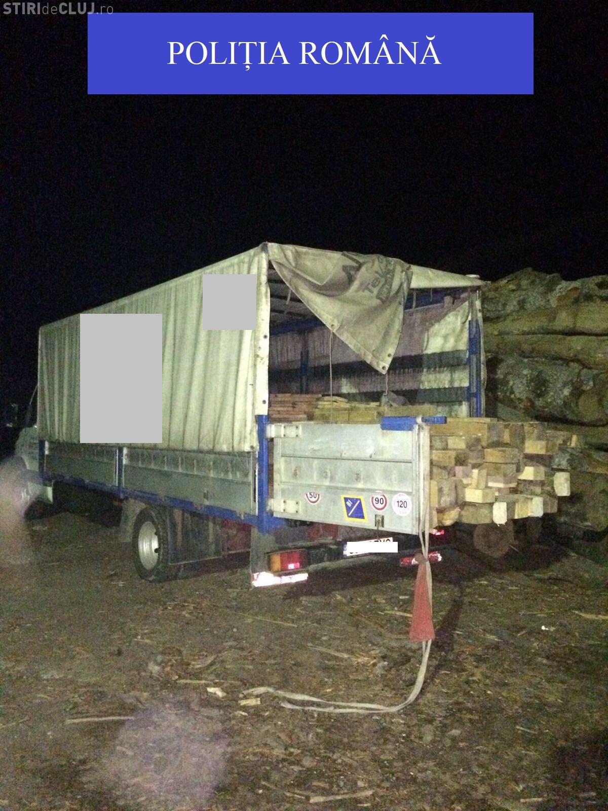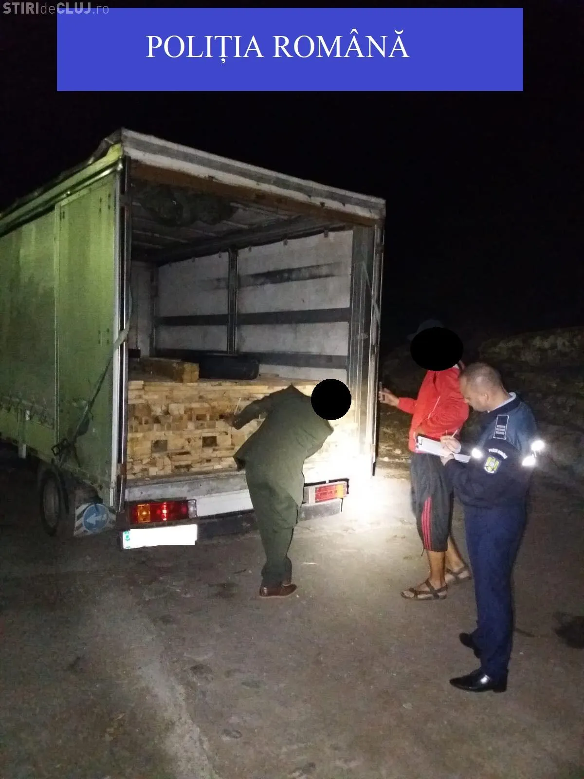 Două camioane, pline cu lemne furate, confiscate de polițiștii clujeni FOTO
