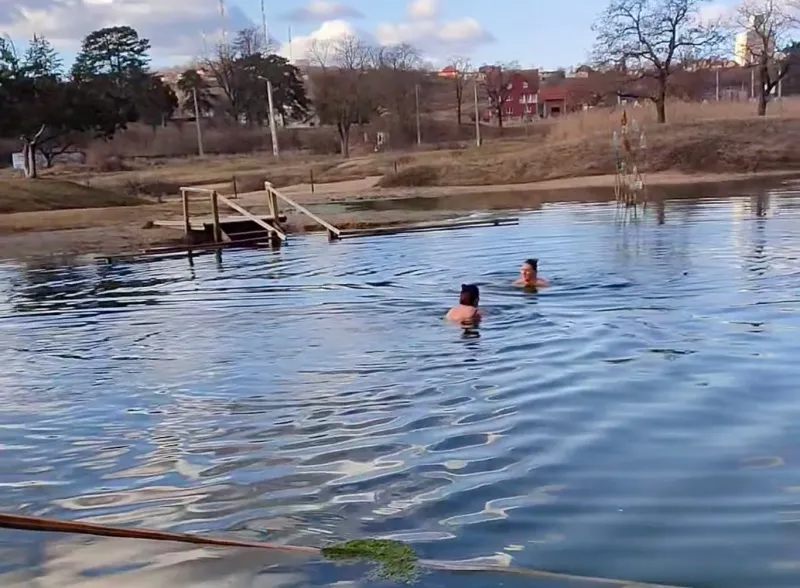 Două femei și-au luat inima în dinți și au făcut baie în lacul ”Băltoaca” din Băile Turda! Temperatura era de 9 grade Celsius, dar acest lucru nu le-a speriat pe cele două.