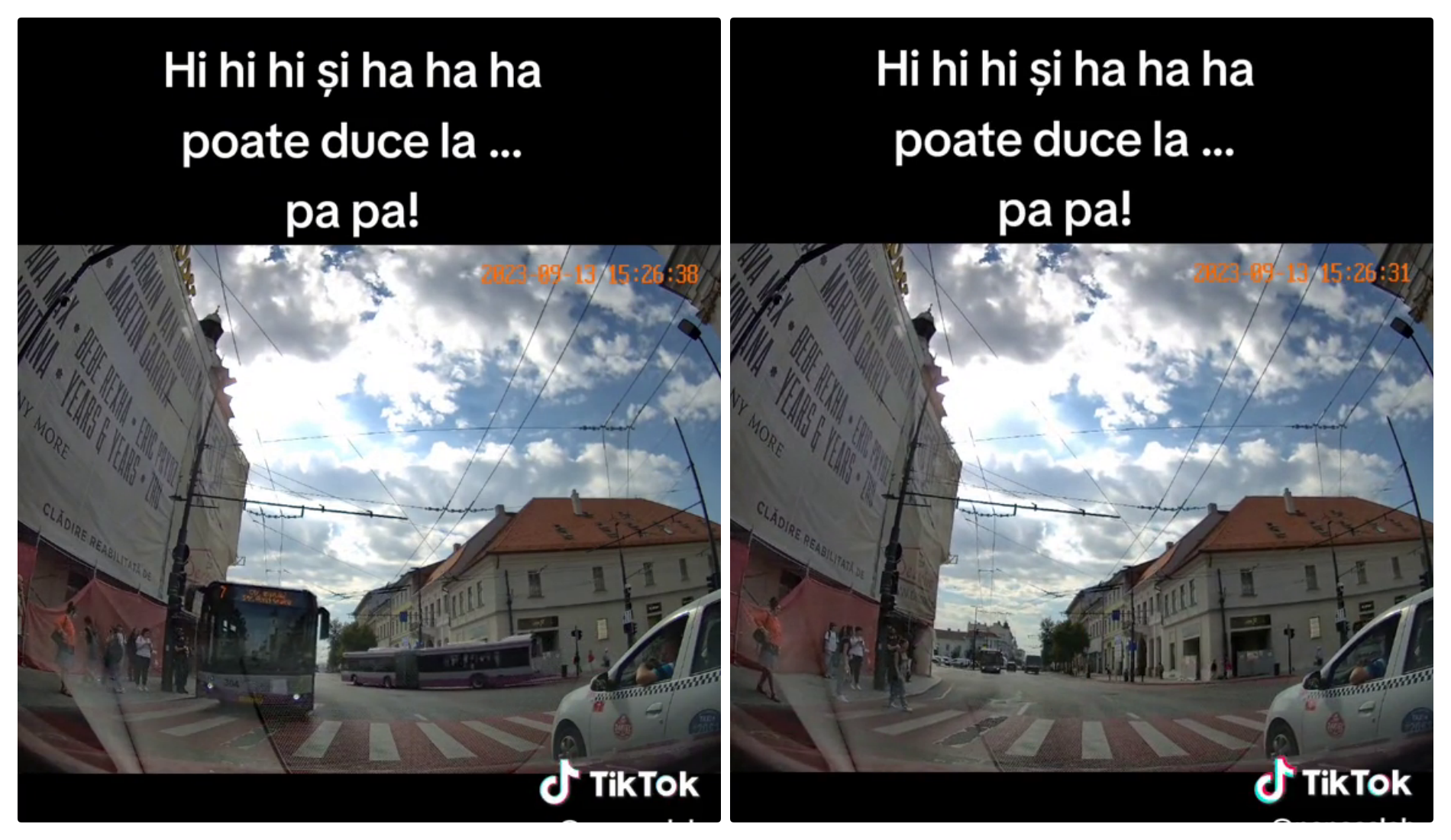 Două fete au fost la un pas să fie lovite de un troleibuz în centrul Clujului: ”Hi, hi, hi și ha, ha, ha, pot duce la ... pa, pa!” - VIDEO