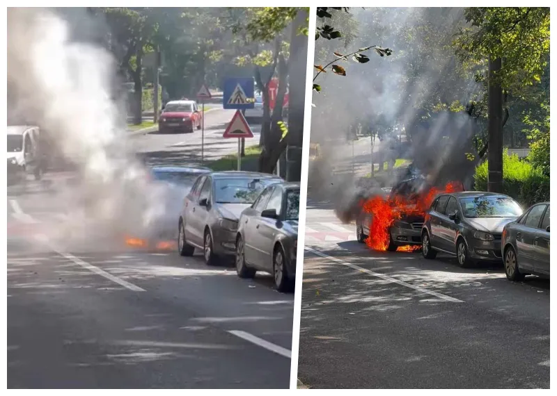 Două mașini au luat foc pe o stradă din Cluj-Napoca! Pompierii intervin de urgență - FOTO/VIDEO