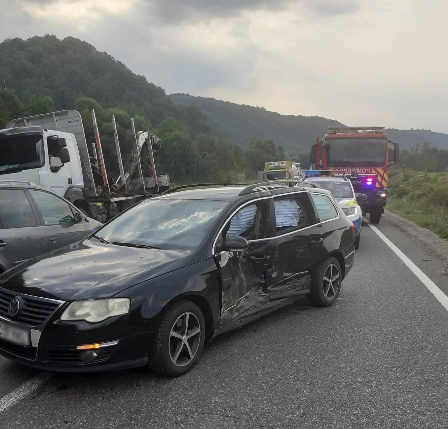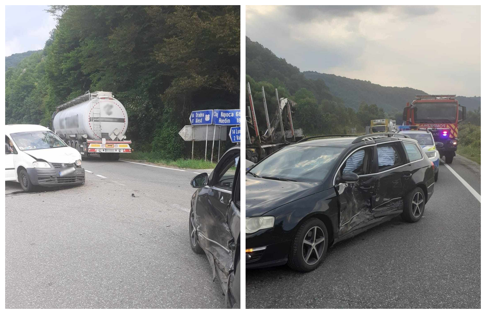 „Pompierii din cadrul Detașamentului Huedin au intervenit în această dimineață la un accident rutier petrecut pe raza localității Poieni, pe DN1E60, la intersecția cu drumul ce duce spre localitatea Valea Drăganului.