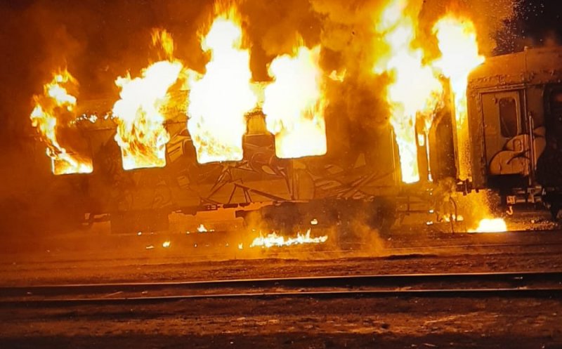 Două vagoane dezafectate din Gara Cluj au ars duminică dimineață. Cel mai probabil, o persoană fără adăpost a făcut foc într-unul dintre vagoane pentru a se încălzi, iar acestea s-au aprins.