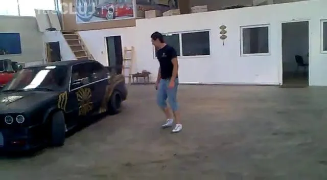 Drift printr-un service auto din Cluj-Napoca! Un bolid s-a rotit in viteza in jurul unui tanar VIDEO
