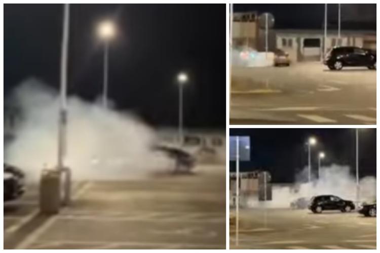 Un șofer teribilist a fost surprins făcând drifturi în parcarea unui magazin din Cluj!