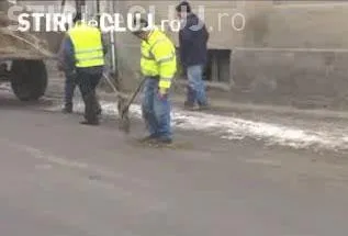 Azi-dimineata in jurul orei 11,00, angajatii de la drumuri din Dej "plombau" de zor gropile din oras. Si cum pe frig turnarea asfaltului nu e chiar la indemana, au gasit o solutie: in fiecare groapa puneau pietris, pe care apoi angajatul meticulos in batatorea cu piciorul.