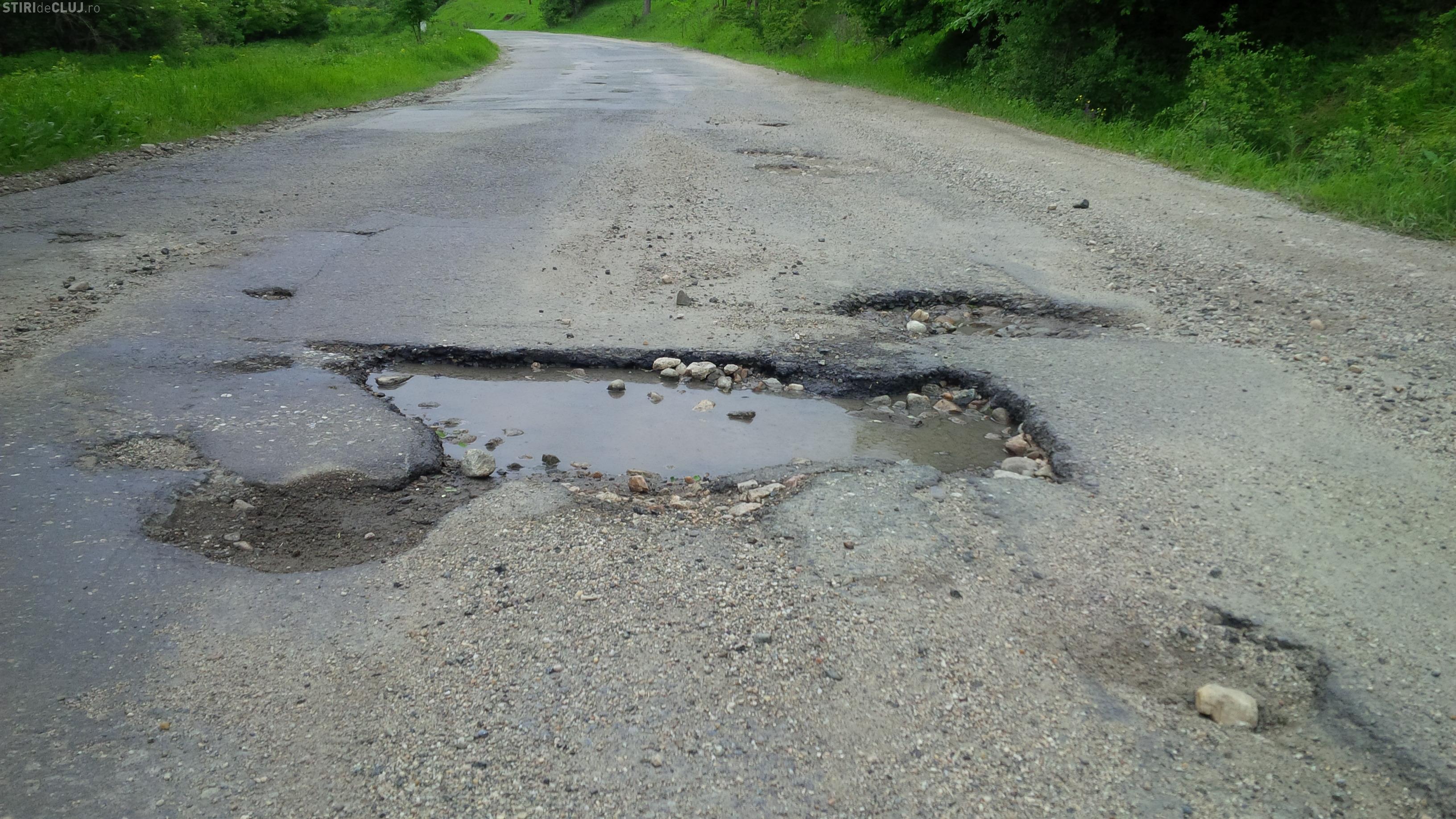 Drumul care face accesul la Băișoara, plin de gropi: E un pericol pentru șoferi FOTO